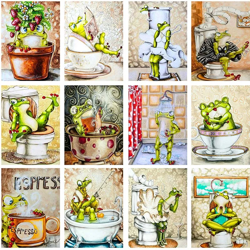 Алмазная 5D живопись сделай сам, лягушка на унитазе, полная вышивка животными, алмазная вышивка крестиком для декора ванной комнаты