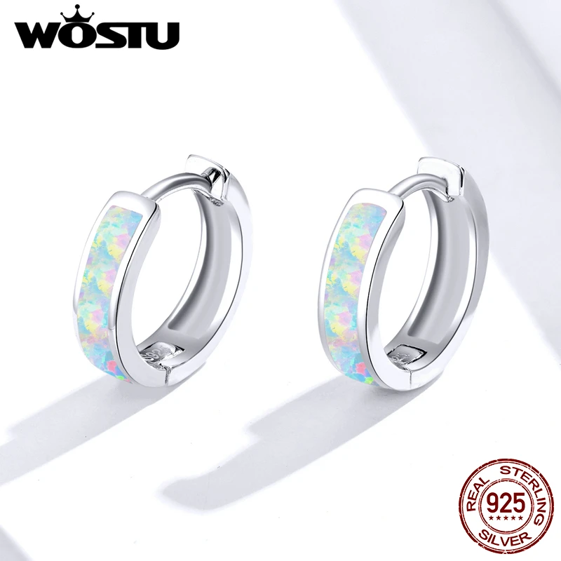 WOSTU, 100% Стерлинговое Серебро 925 пробы, круглые серьги-кольца, серьги с опалом для женщин, Свадебные Роскошные ювелирные изделия, подарок, CQE861
