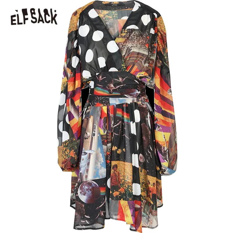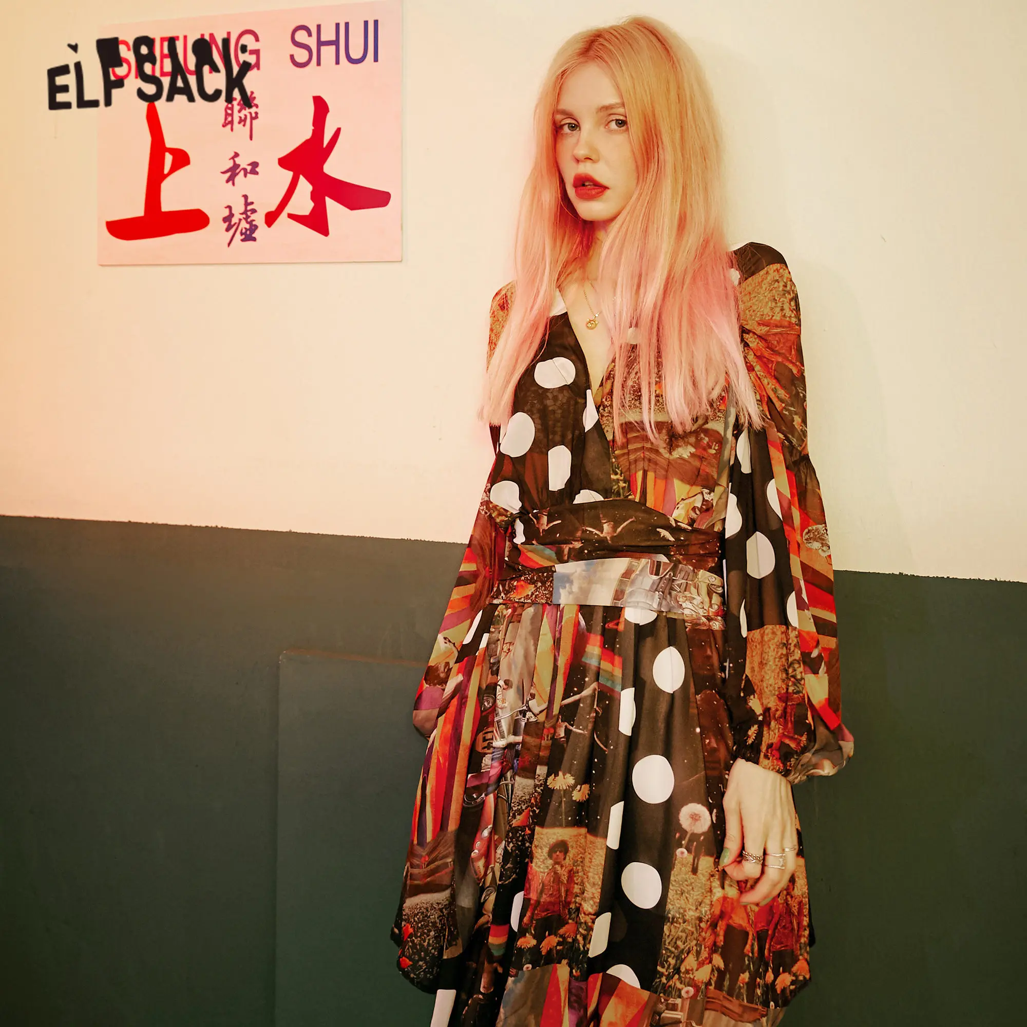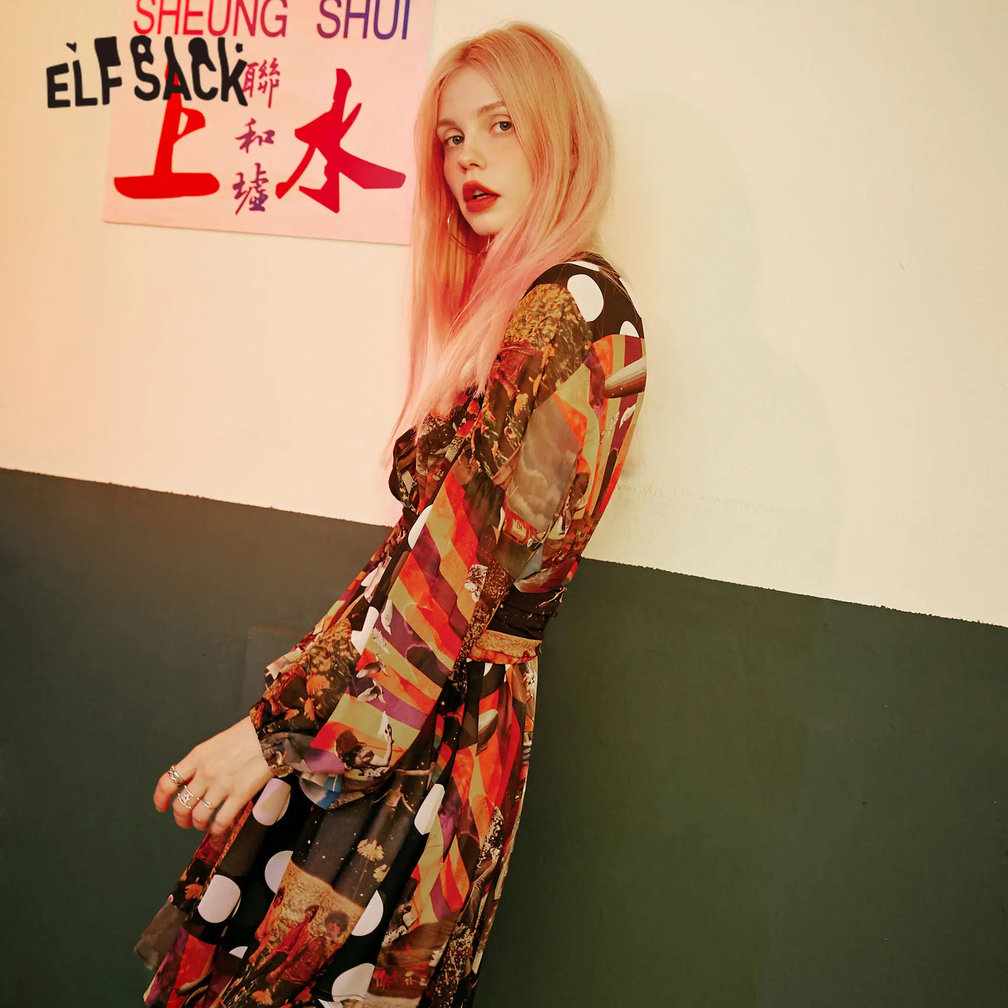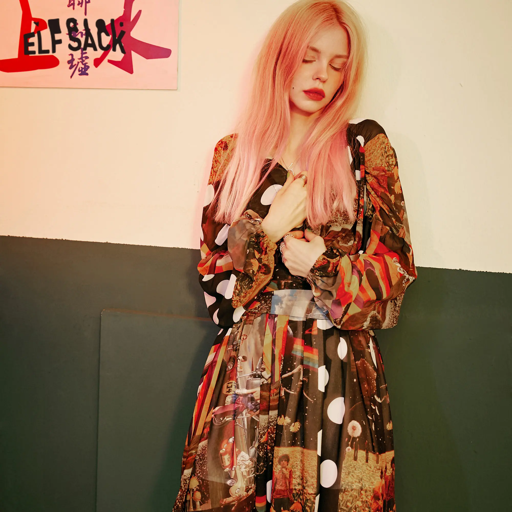 Женское платье в горошек ELFSACK, разноцветное Повседневное платье в стиле ретро с длинным рукавом, праздничное платье в Корейском стиле, весна 2020 icon star icon star icon star icon star icon star