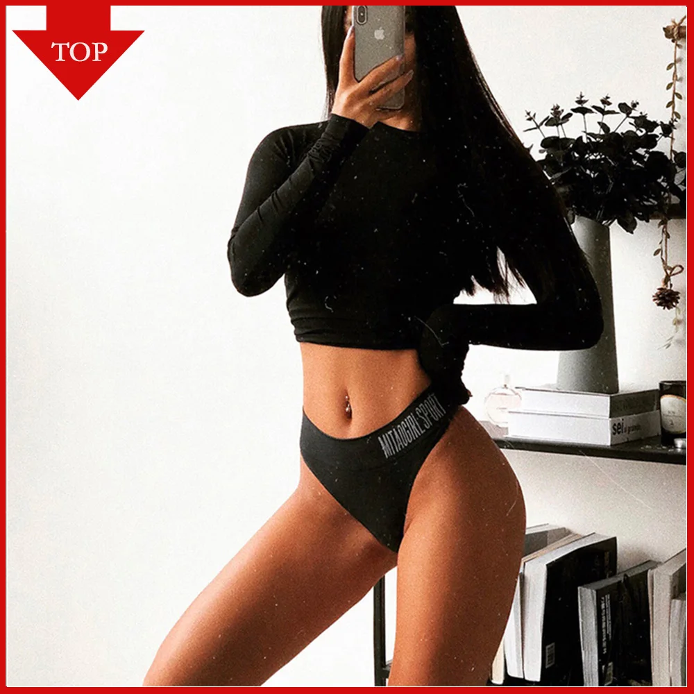 Стринги женские, хлопковые, бесшовные, со средней посадкой, с надписями