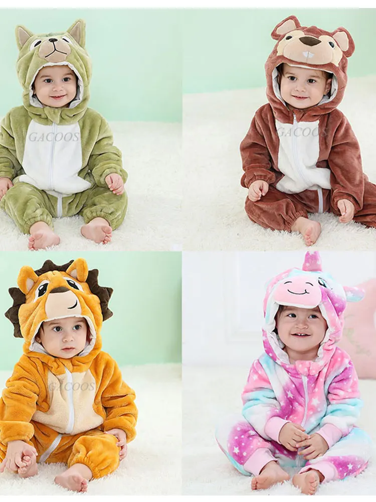 Детские милые Мультяшные фланелевые детские комбинезоны лисакроликп...