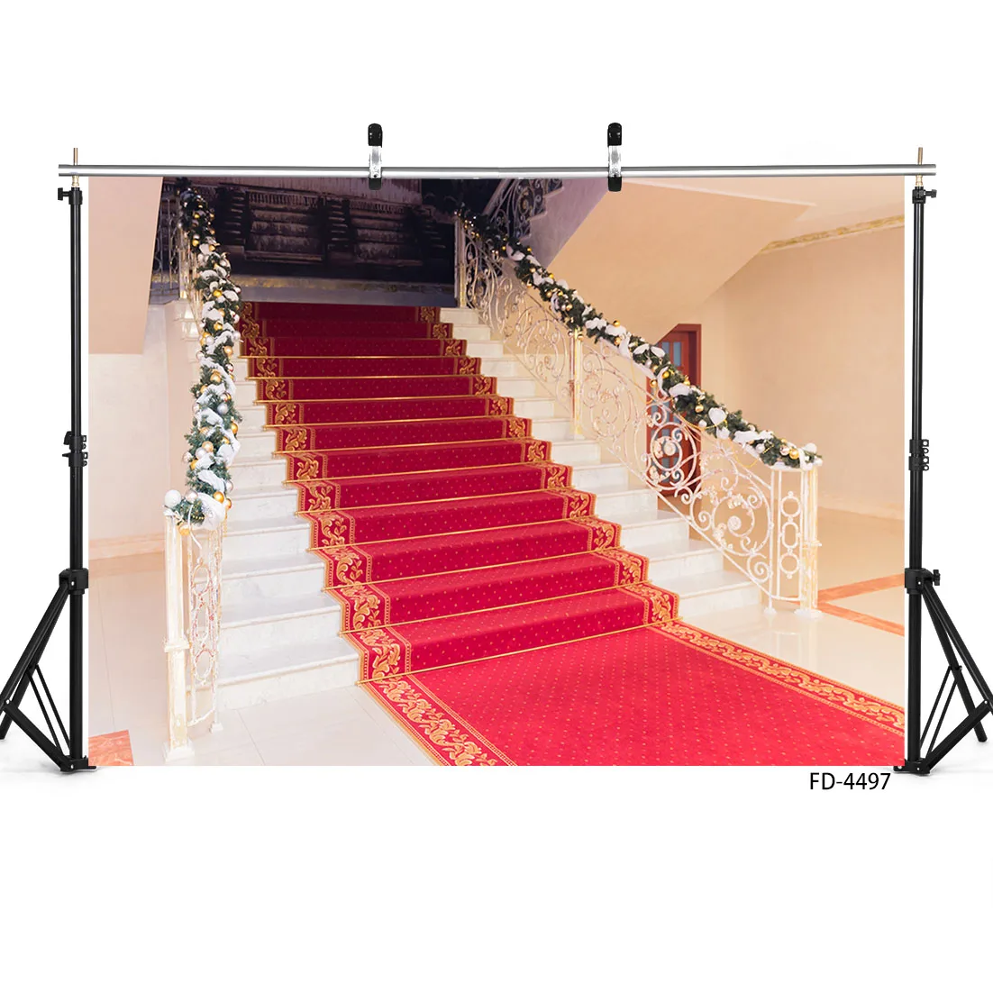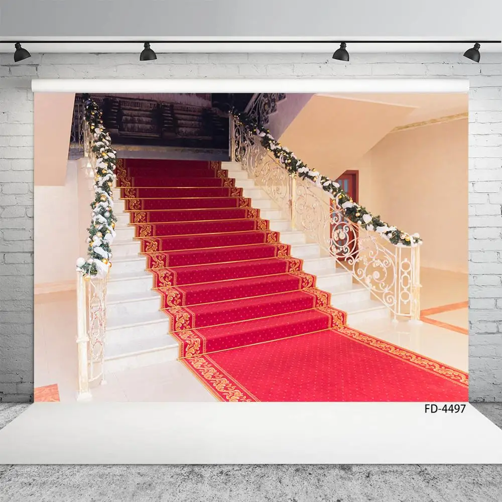 Виниловый фон для фотосъемки детей на свадьбу, день рождения, красный ковер, ступени, цветы