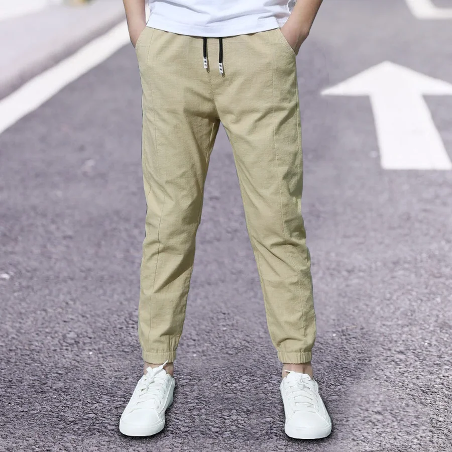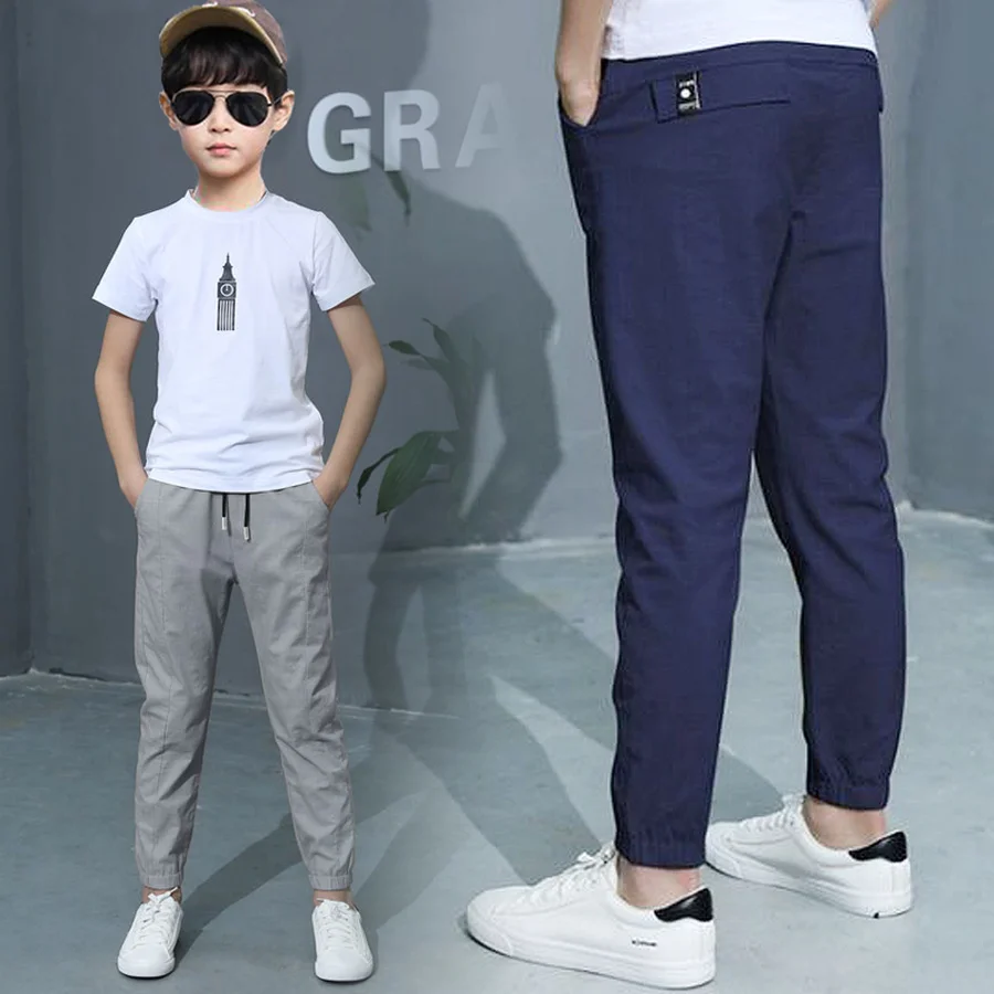 Брюки для мальчиков, детские весенние однотонные хлопковые льняные брюки, модные полностью прямые брюки для мальчиков 110-160