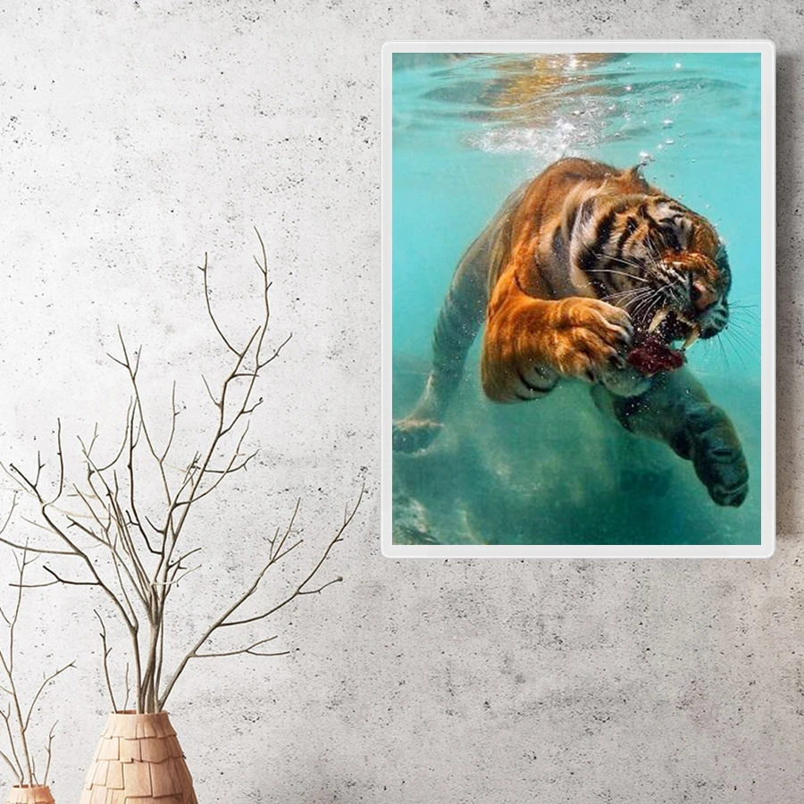 Фуюн DIY 5D алмазов картина Животные тигр ручной работы Алмазная вышивка крестиком на рисунке, Наборы Алмазная вышивка узоры Стразы