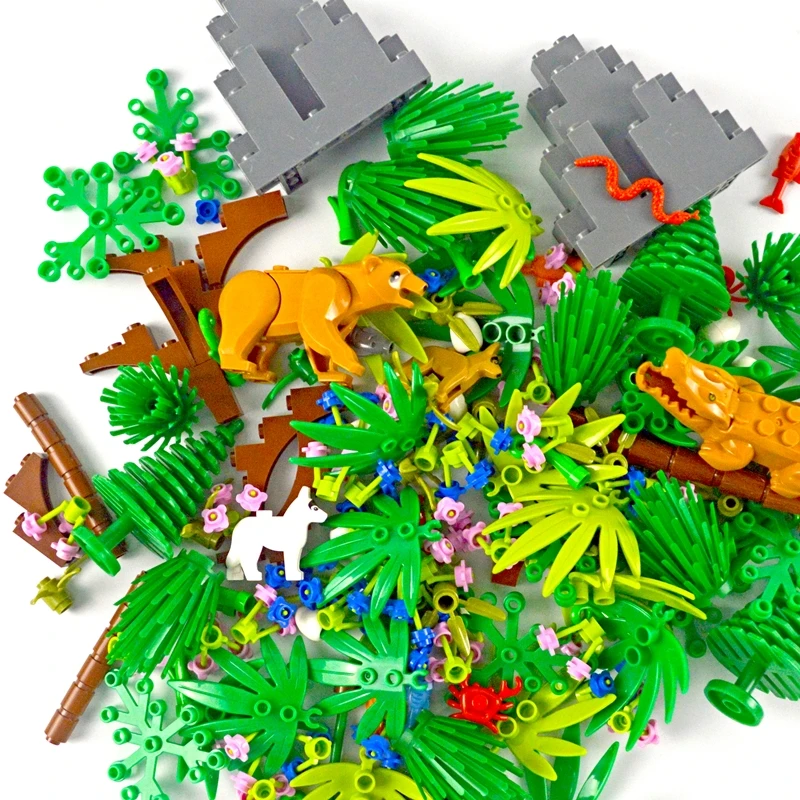 DIY Кирпичи ветка дерева ствол трава цветок животное городской завод аксессуары строительные блоки садовая плита совместима со всеми брендами