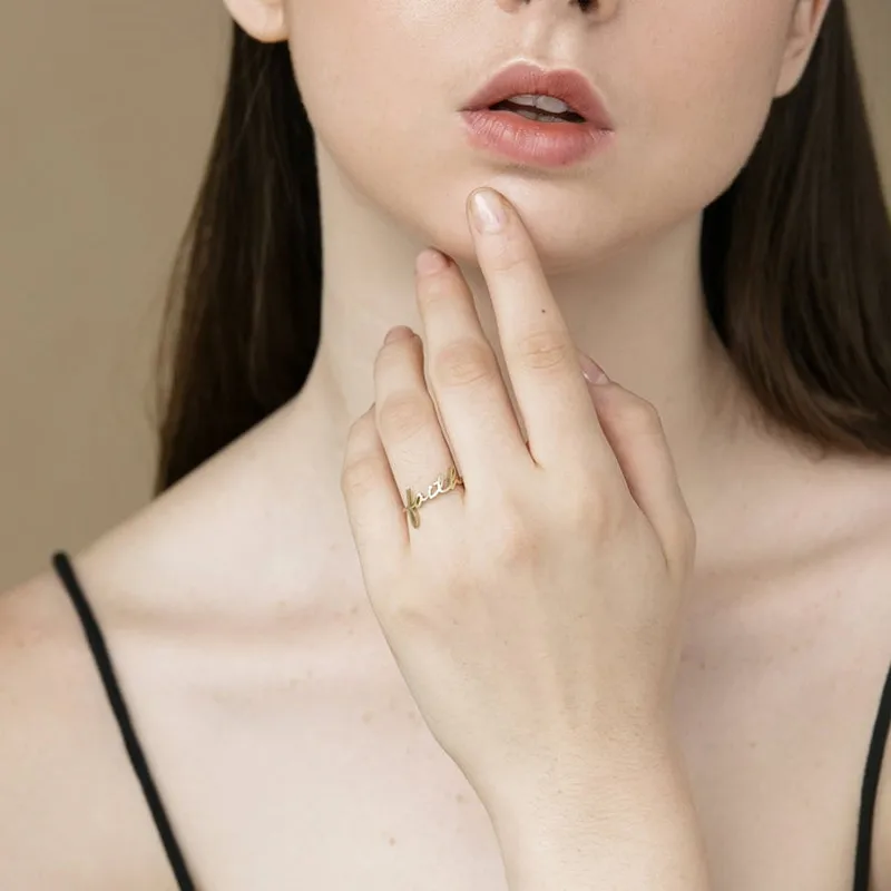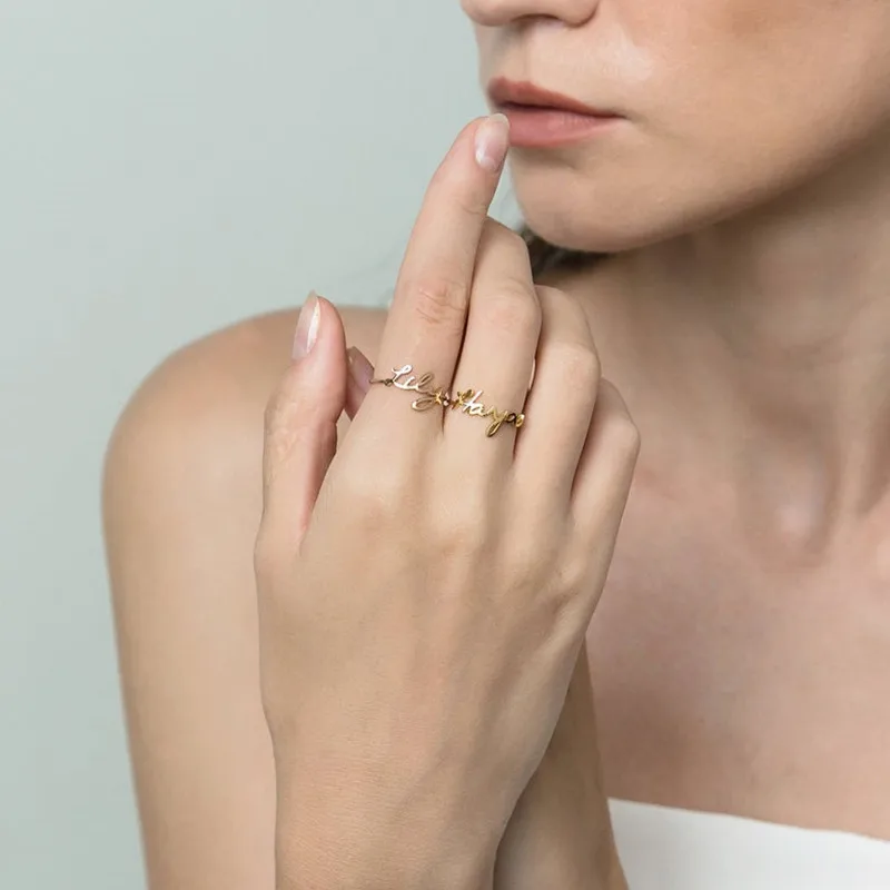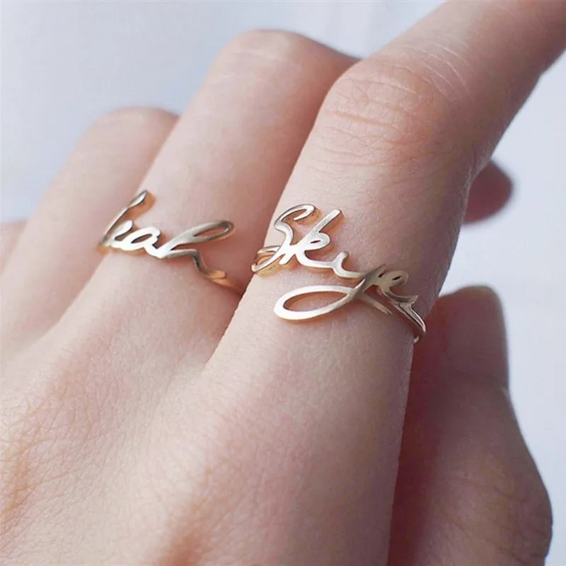 Кольцо с именем на заказ, из нержавеющей стали, Золотое кольцо с минимальным именем, ювелирное изделие, курсивное кольцо с надписью для женщин