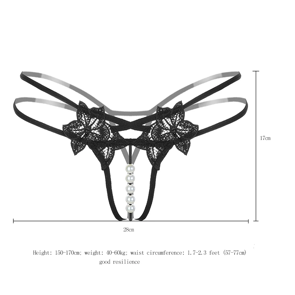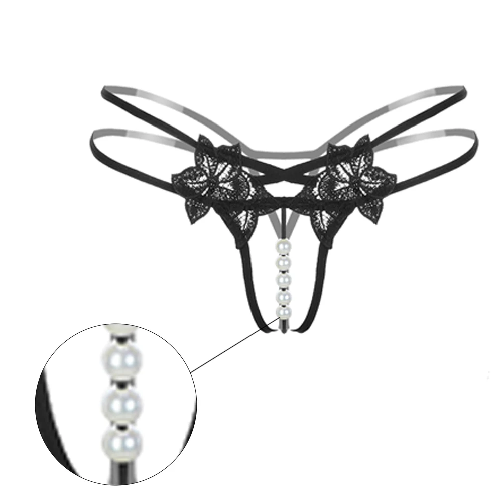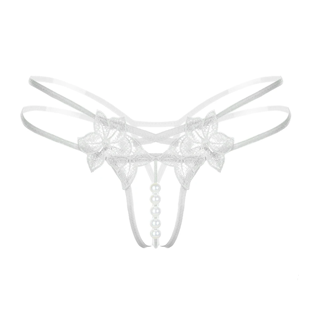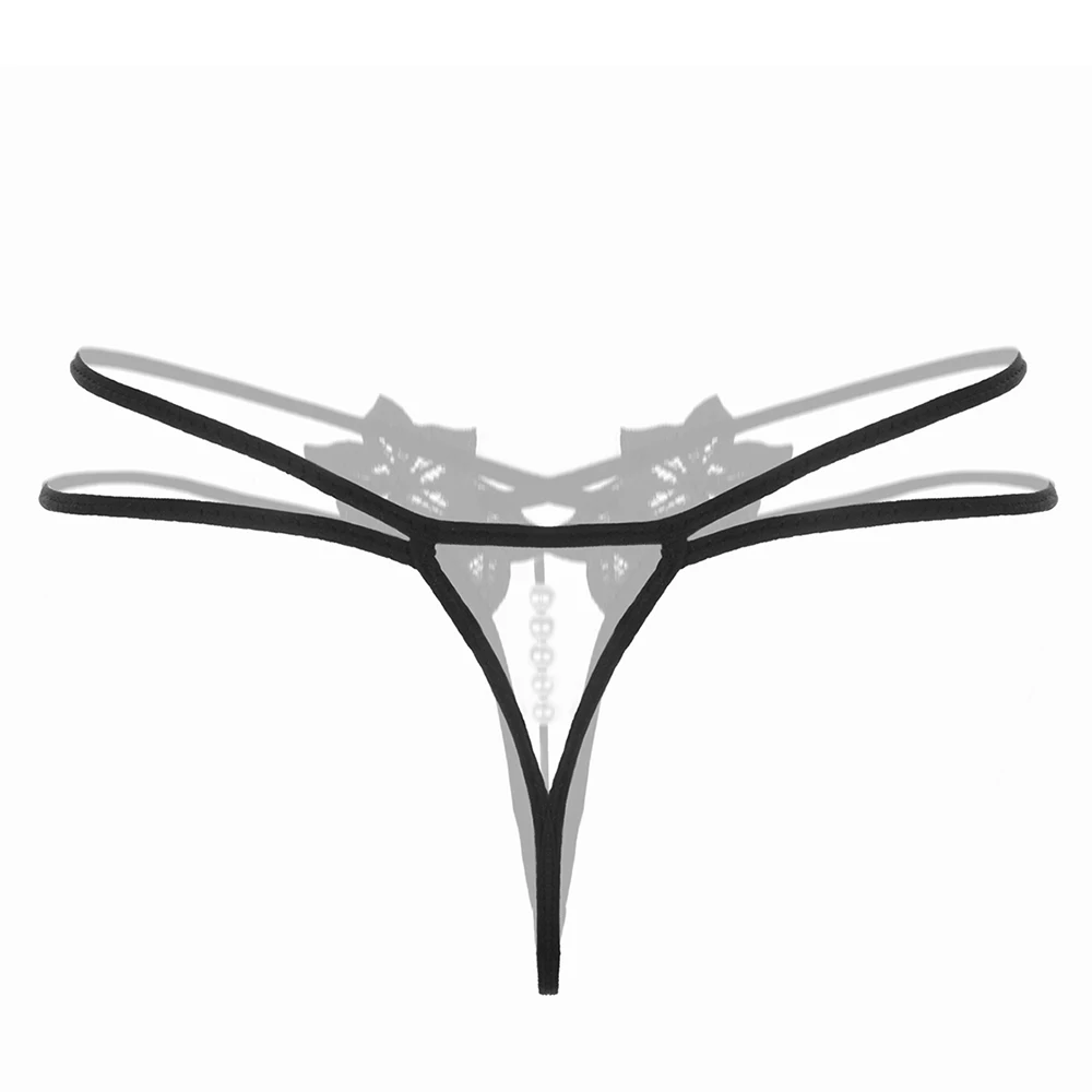 Трусики-стринги женские кружевные с вырезом, трусики с жемчужинами