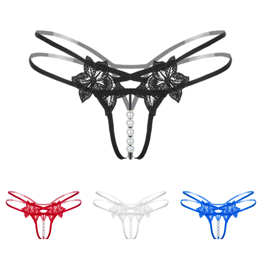 Сексуальные женские трусики с двойными цветами и жемчугом, женские ...