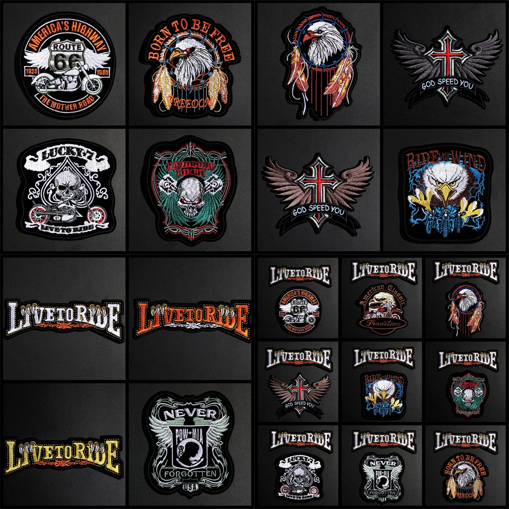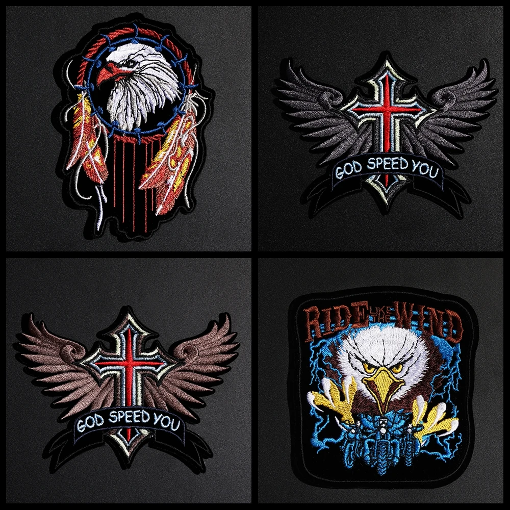 Патчи с вышивкой в стиле панк, крылья ангела, Орел, Череп, для глажки, байкерские мотоциклетные патчи с вышивкой для одежды