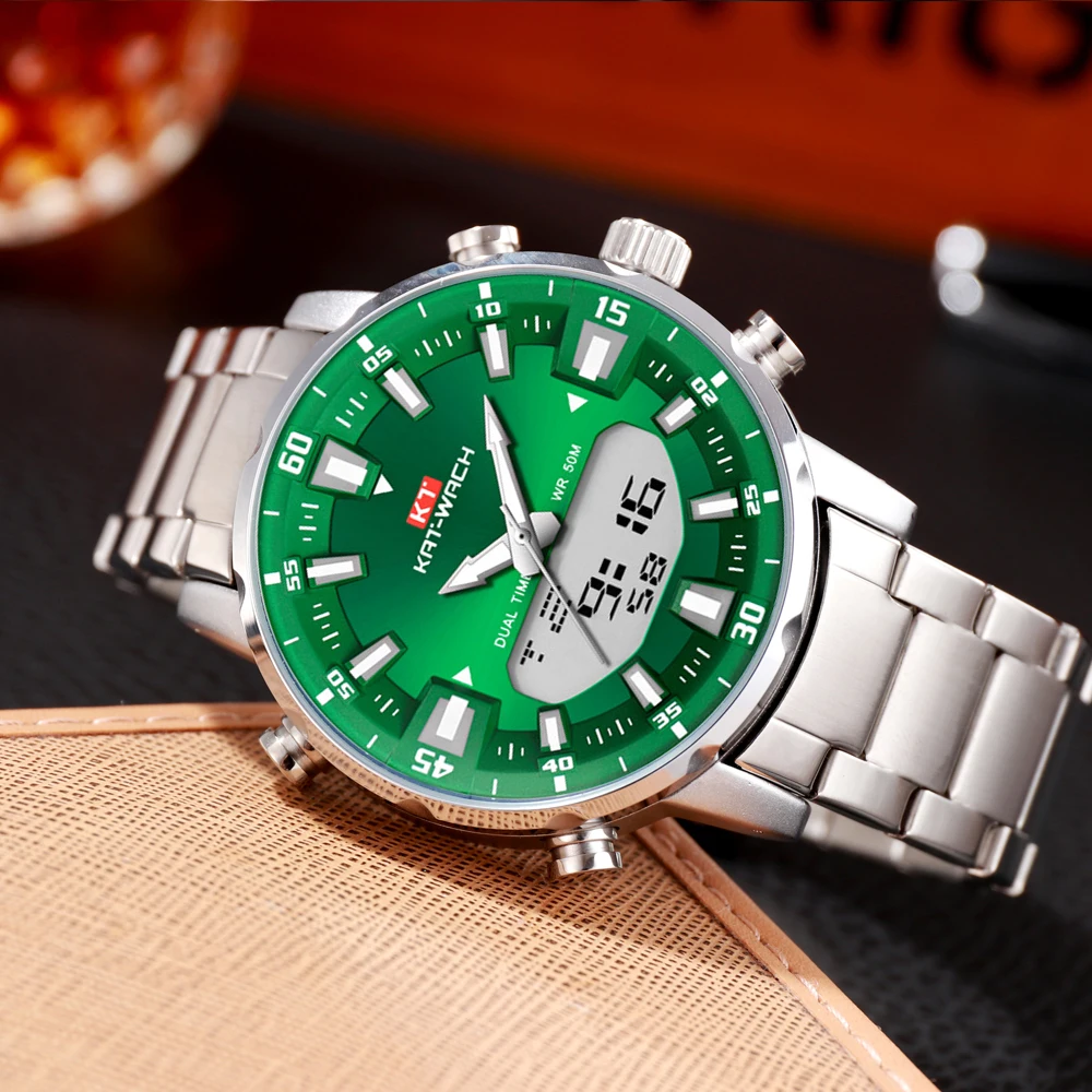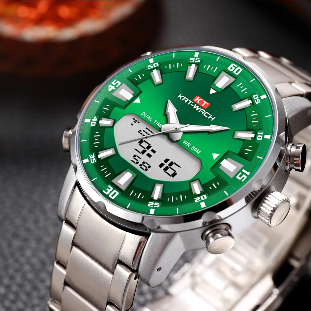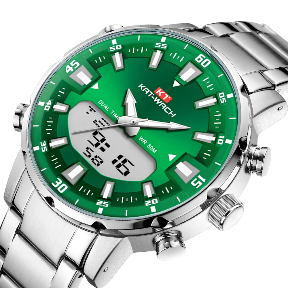 Часы Wach Мужские кварцевые с хронографом, брендовые Роскошные модные спортивные водонепроницаемые полностью стальные, зеленые, 2020