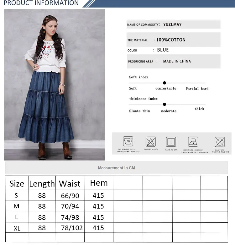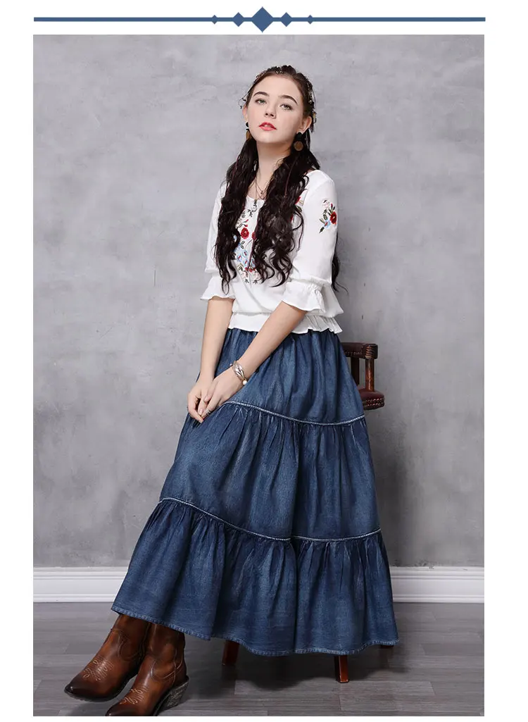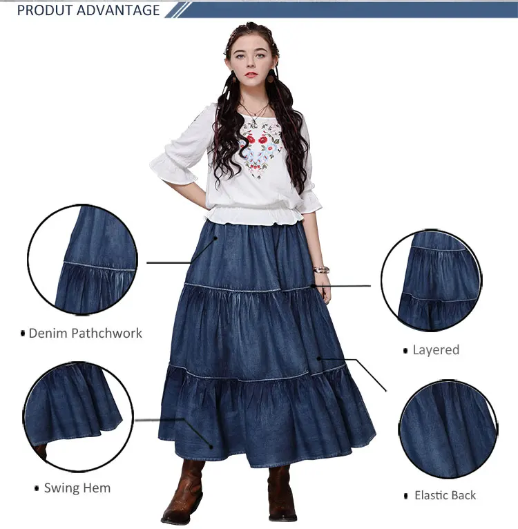Юбки Женские s 2020 Yuzi.may Boho, новая джинсовая женская юбка с многослойным расклешенным подолом, винтажные Лоскутные Длинные синие юбки, X2230