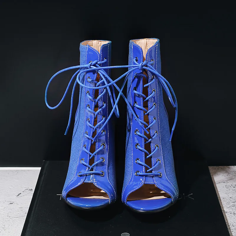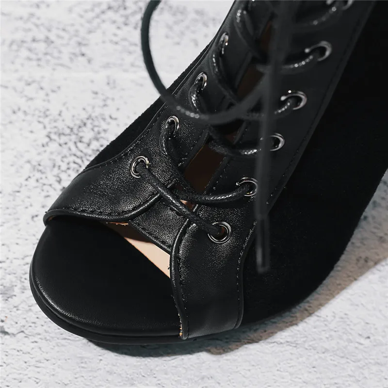 Женские ботинки на шнуровке ASUMER, черные ботинки из искусственной кожи, на тонком высоком каблуке, с открытым носком, размеры 34-46, 2021, для лета, флокированные ботильоны