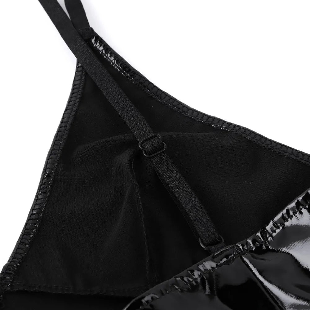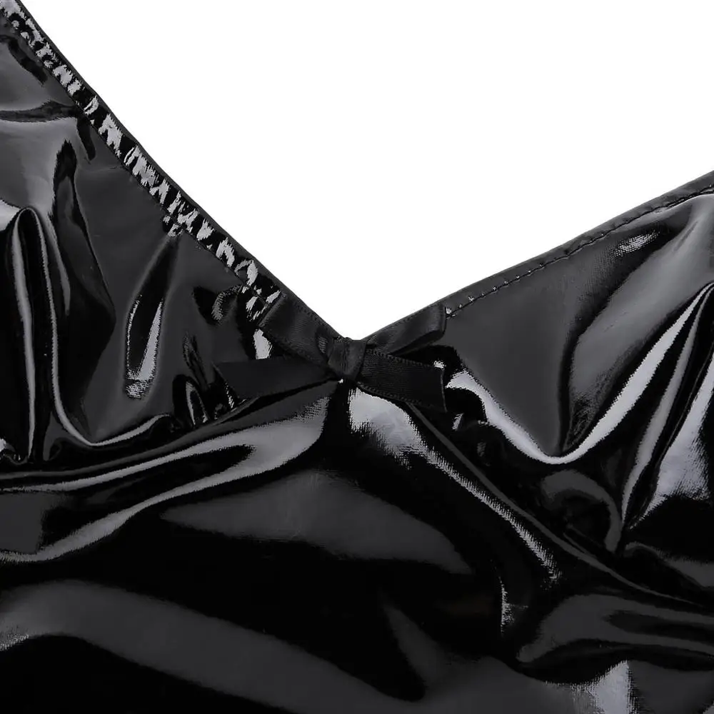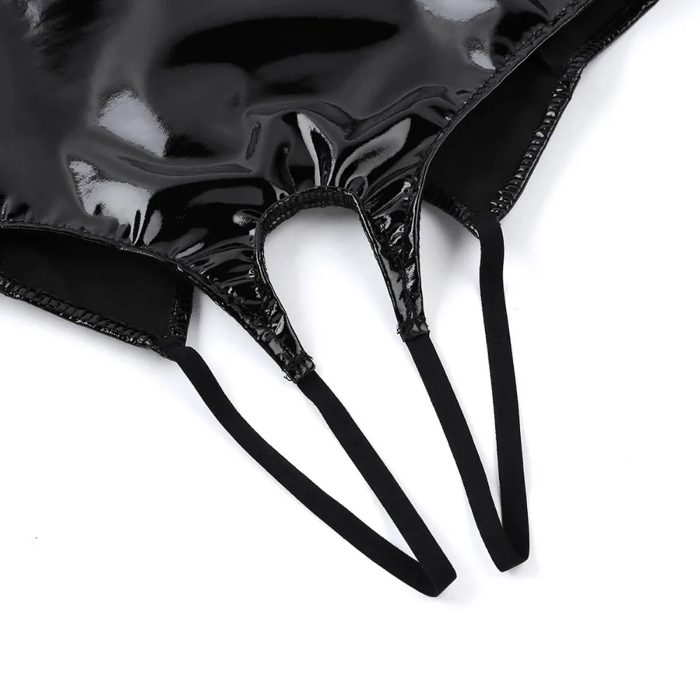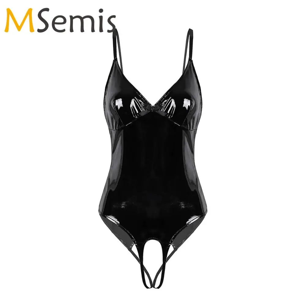 Женское сексуальное цельное латексное нижнее белье, эротический боди без косточек, Wetlook, кожаная ночная рубашка с открытой промежностью