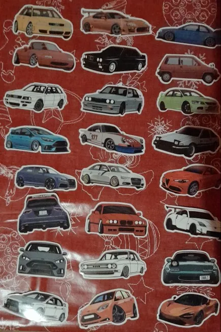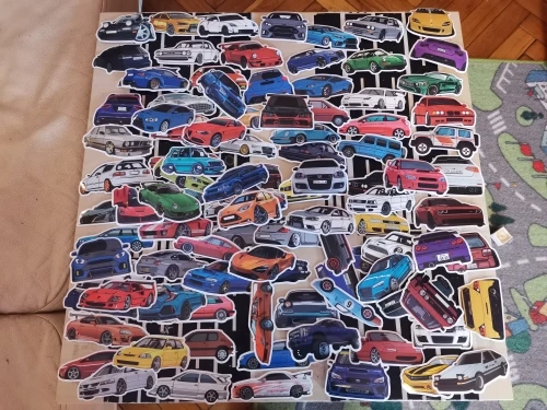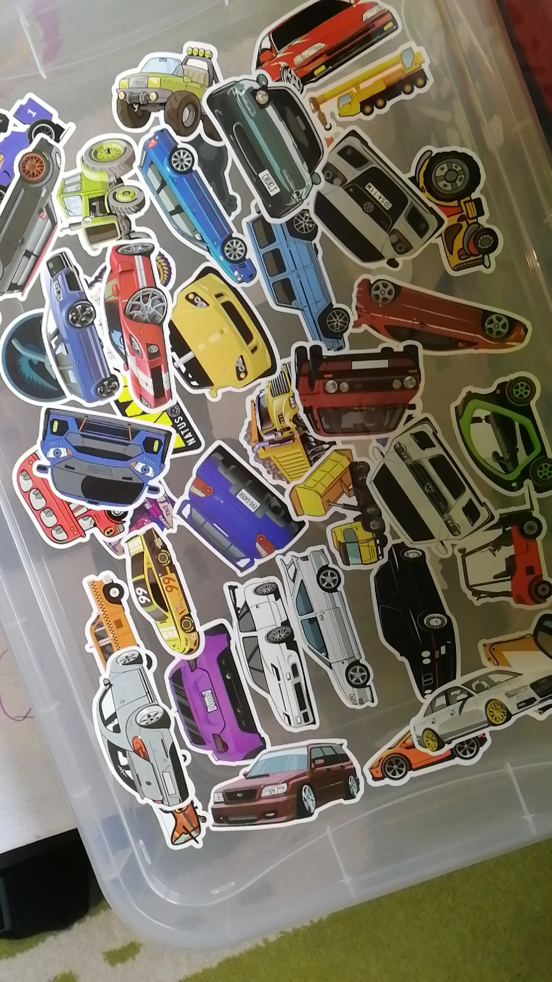одной наклейки не было, долго отправляли. машинки не повторяются.