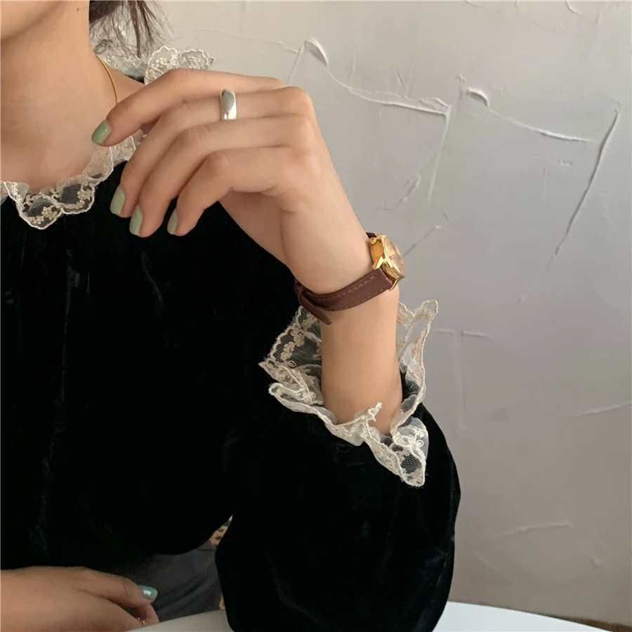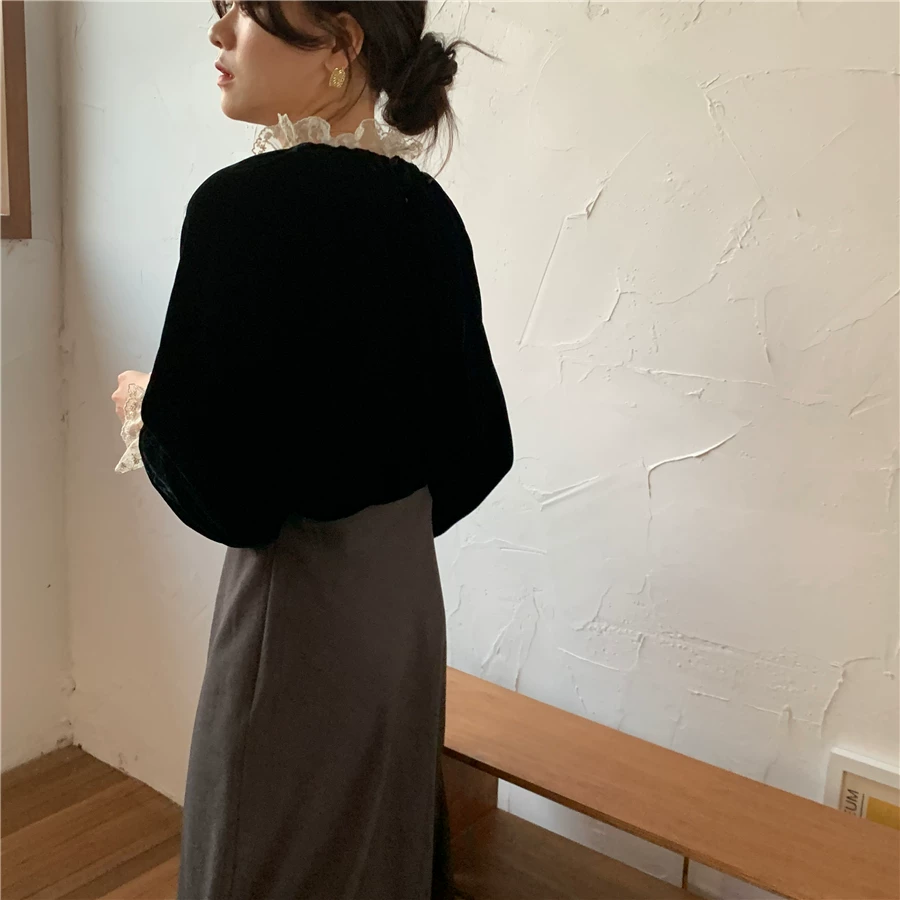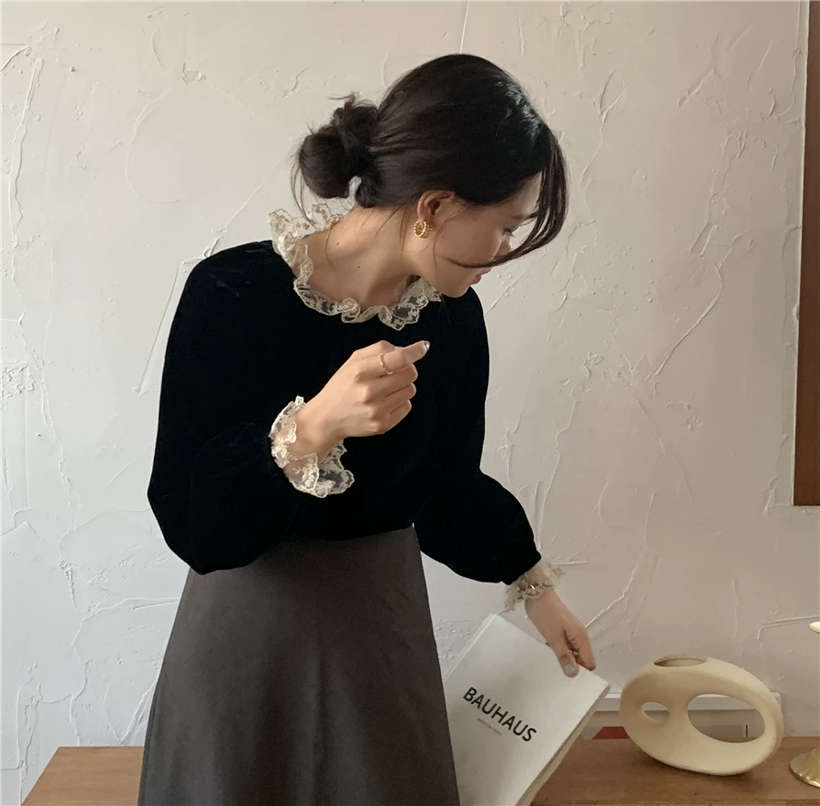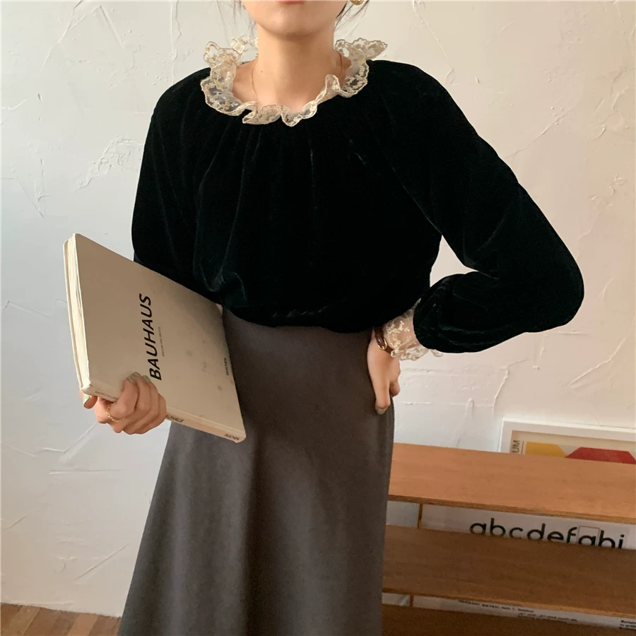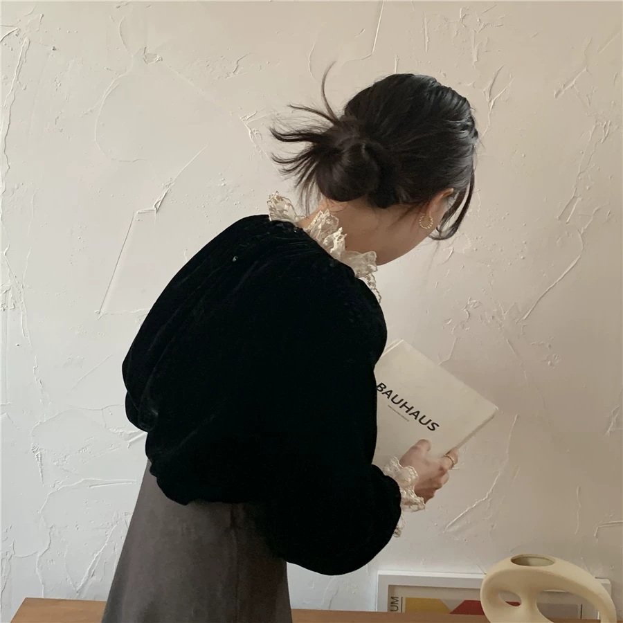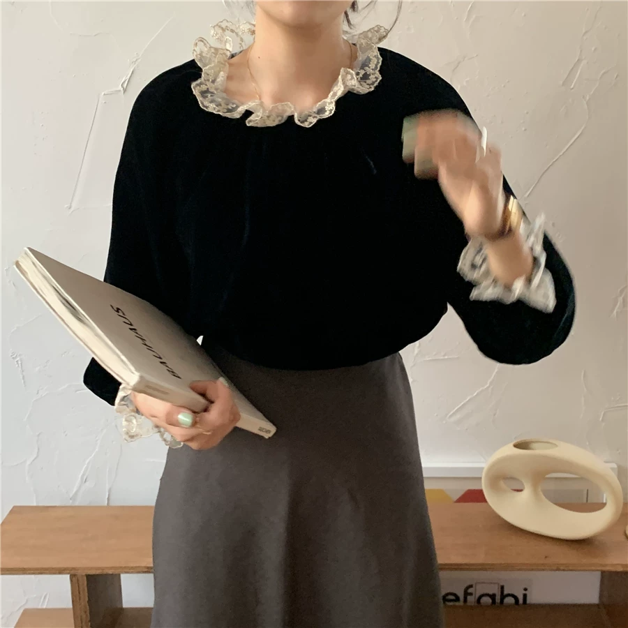 Шикарная кружевная рубашка с рукавом-колокольчиком, женские корейские милые женские рубашки в стиле Харадзюку, ольччан, японская кавайная Женская винтажная одежда для женщин
