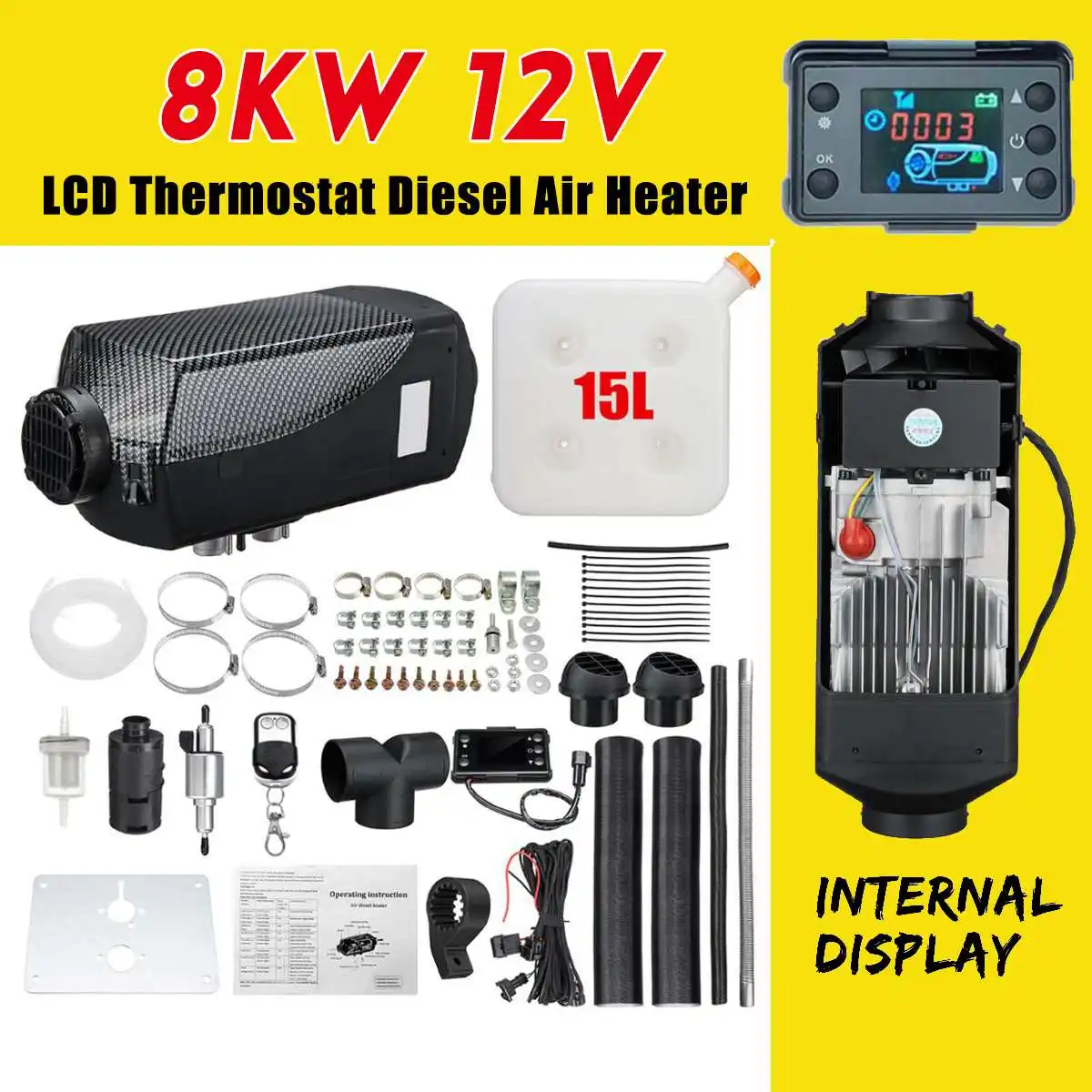 Автомобильный обогреватель 8 кВт, 12 В, 24 В, воздушный дизельный Обогреватель, стояночный обогреватель с дистанционным управлением, ЖК-монитор для автофургонов, автодомов, прицепов, грузовиков, лодок