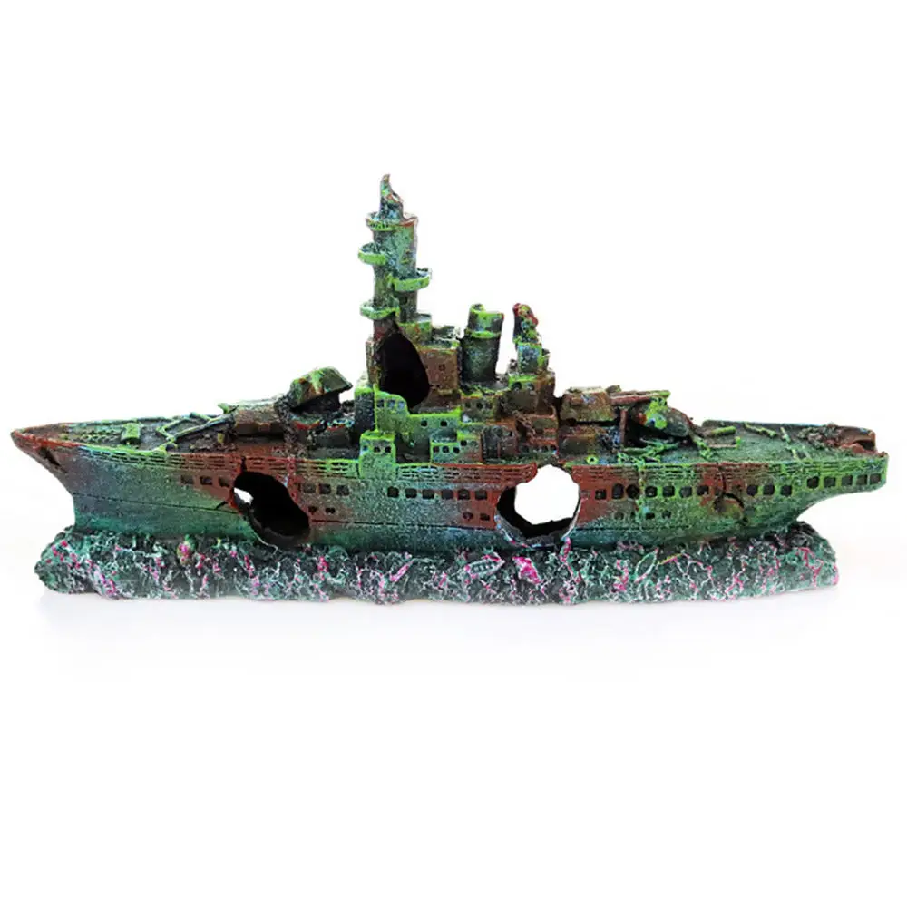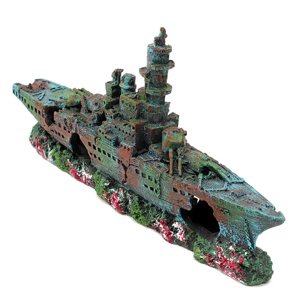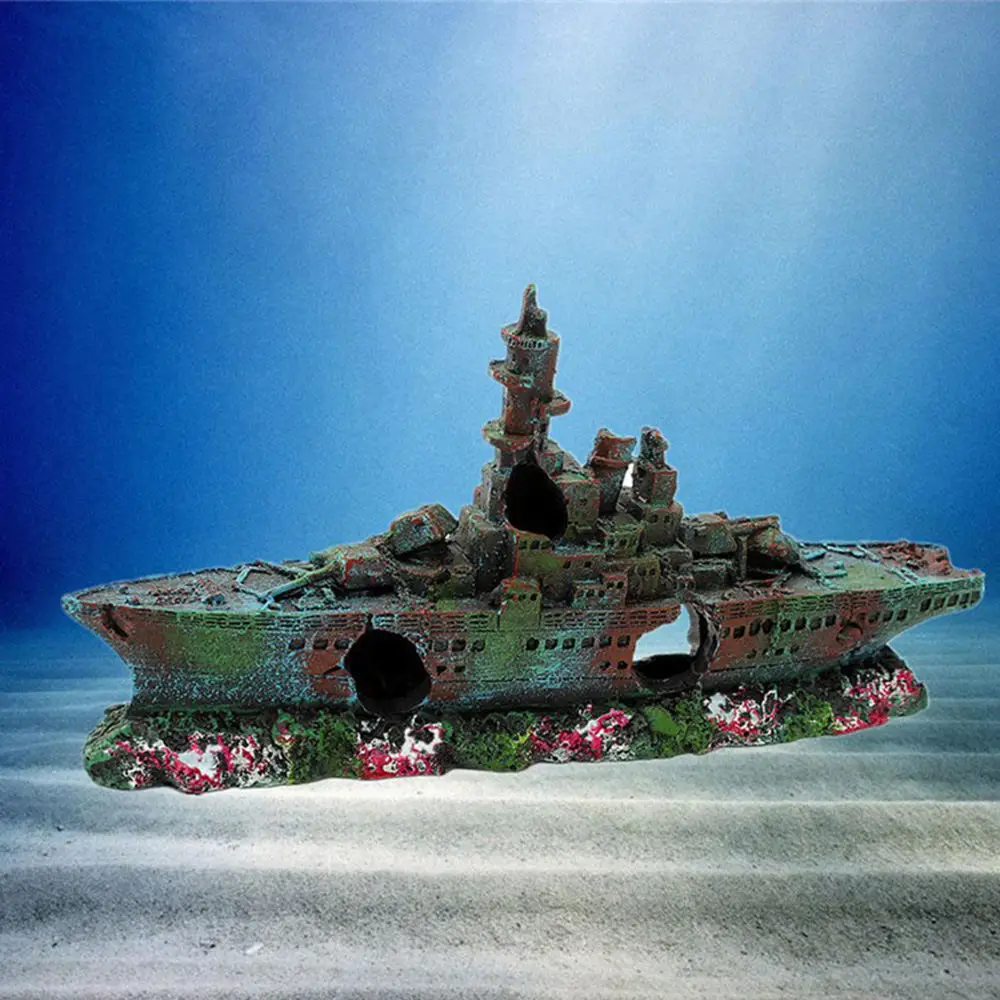 Resin Artificial Fish Tank Sunk Boat Decoration Navy Destroyer Vess...