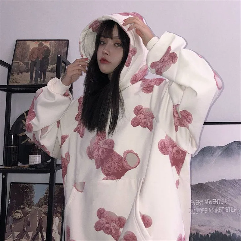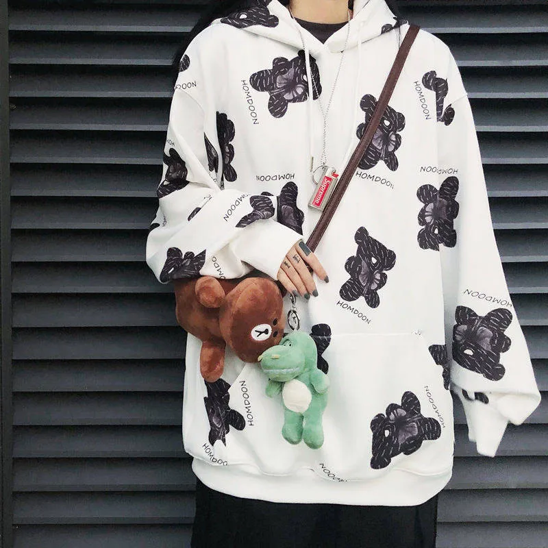 Толстовка с капюшоном и принтом медведя в стиле Харадзюку