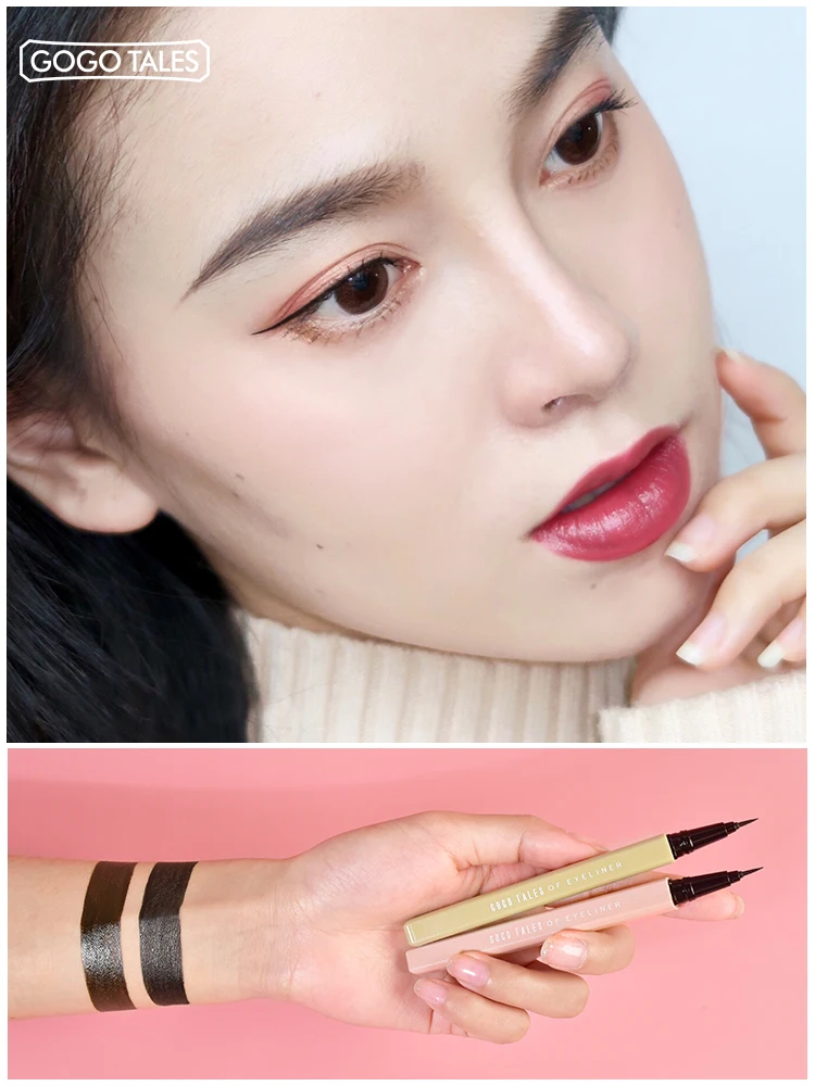 Черная Подводка для глаз Gogo tales, водостойкая Мягкая тонкая кисть телесного цвета, жидкая подводка для глаз, ручка для татуировки, AC135
