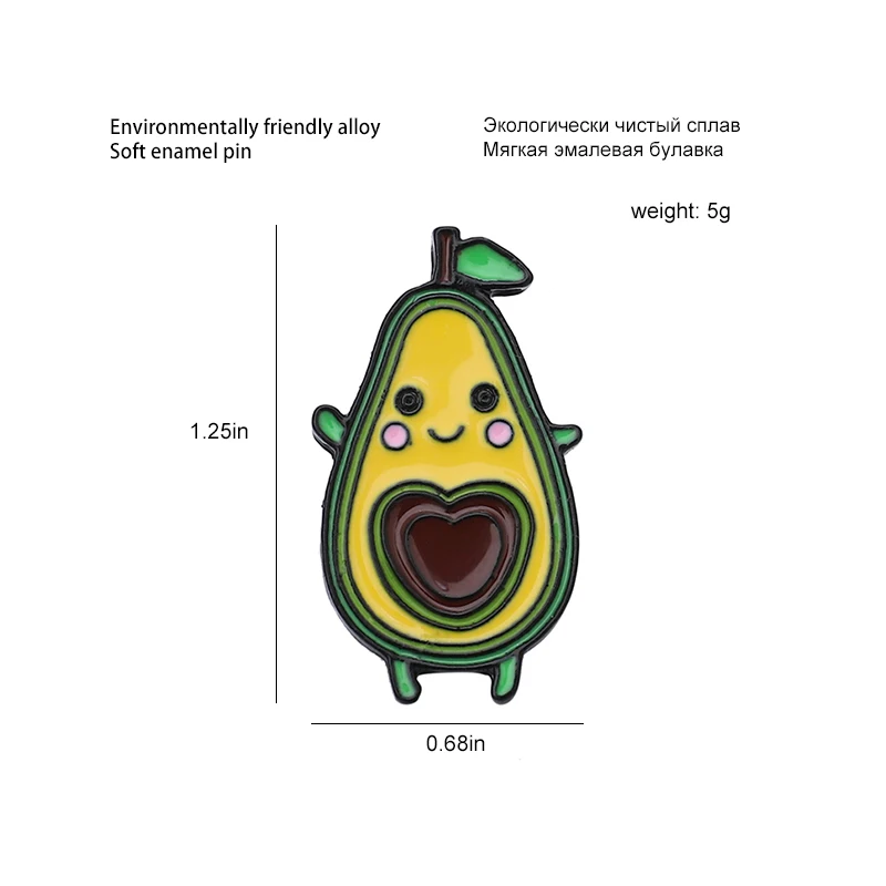 Мультяшные забавные эмалевые булавки с авокадо на заказ, милый прив...