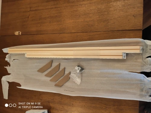 Llegó en el tiempo estimado. Buena calidad de la madera y el pegamento. Lo único que le falta es una foto de las instrucciones también en el paquete (sólo está en las imágenes del producto). Recomendado 100%
