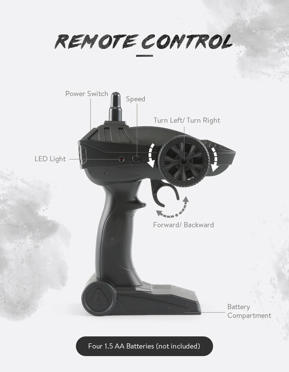 Функция: вперед, назад, поворот налево, поворот направо, система привода 6WD, фара с помощью пульта дистанционного управления 2,4G