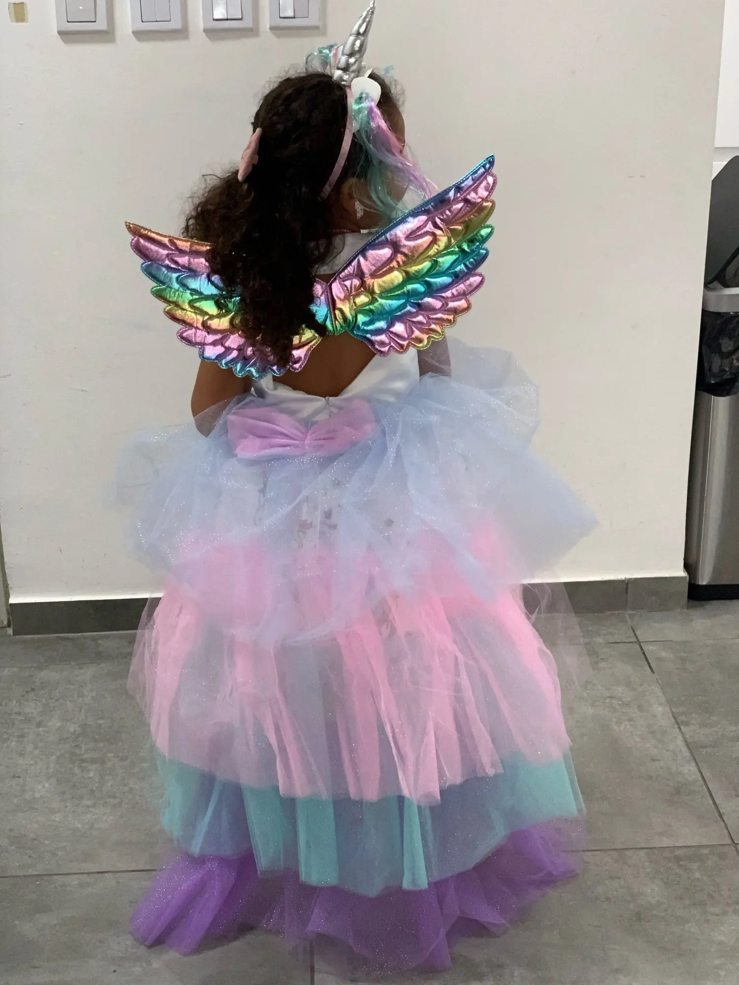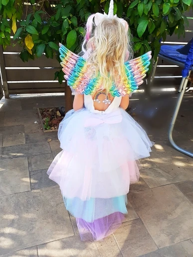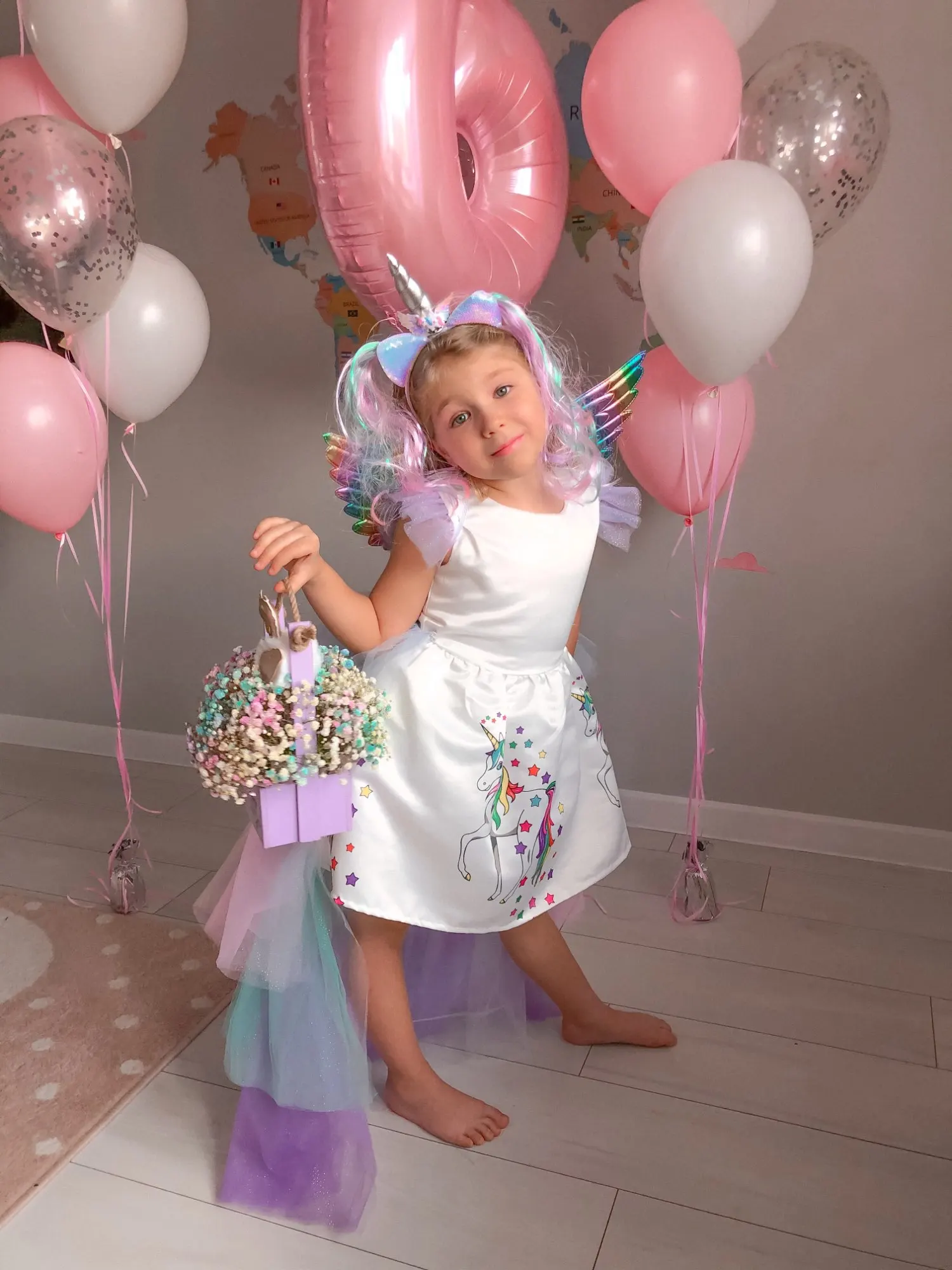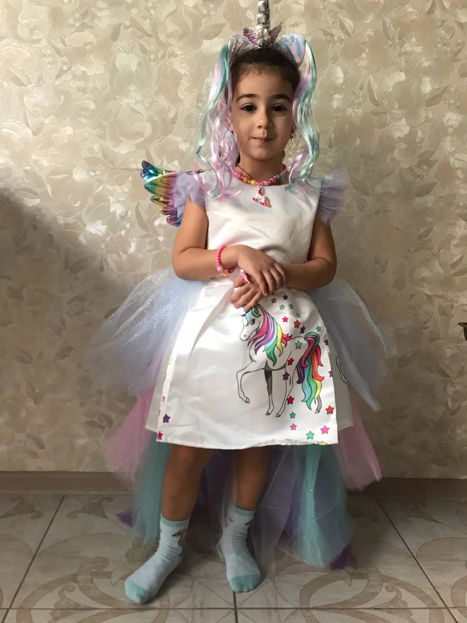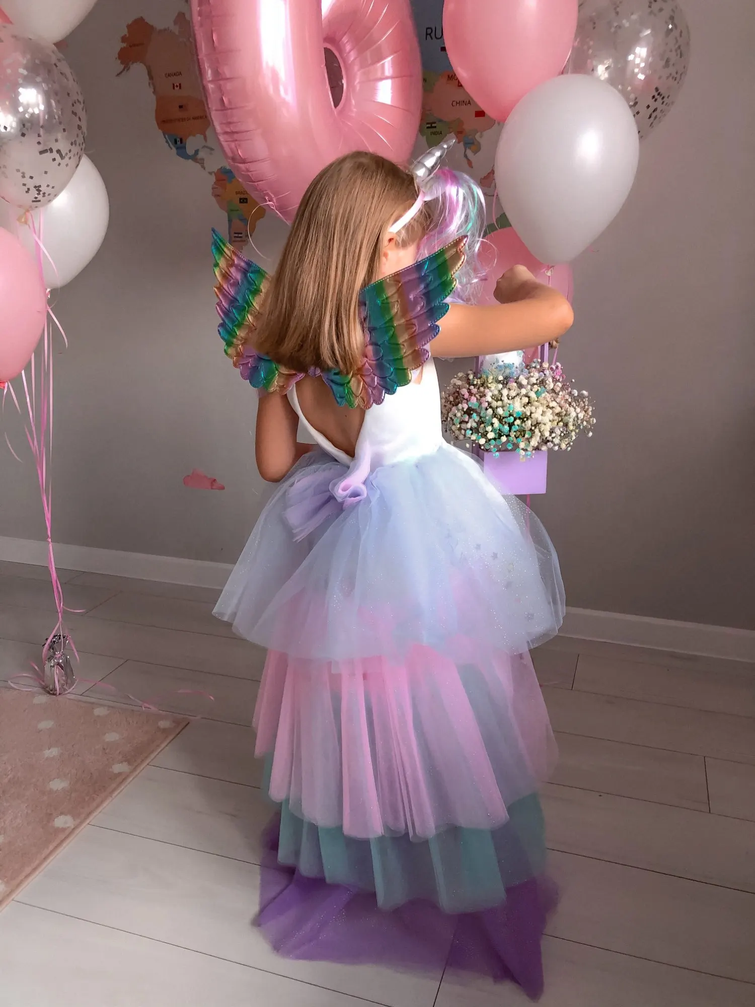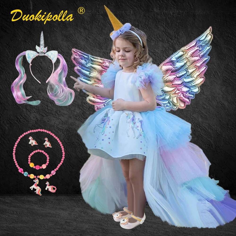 Детское Радужное платье-единорог с длинными хвостами, крыльями ангела, праздничное платье для девочки, костюм принцессы, мяч, платье для девочки с пони