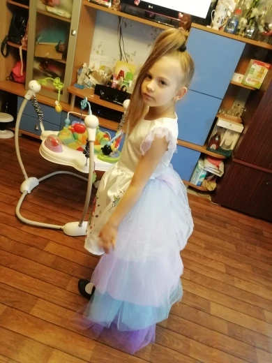 Потрясающее платье!!!! На рост ребёнка 99 село просто идеально! Шлейф качественный, все детали замечательные! Спасибо огромное, будем заказывать другие платья)