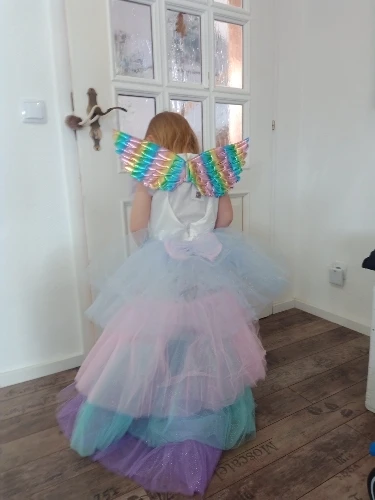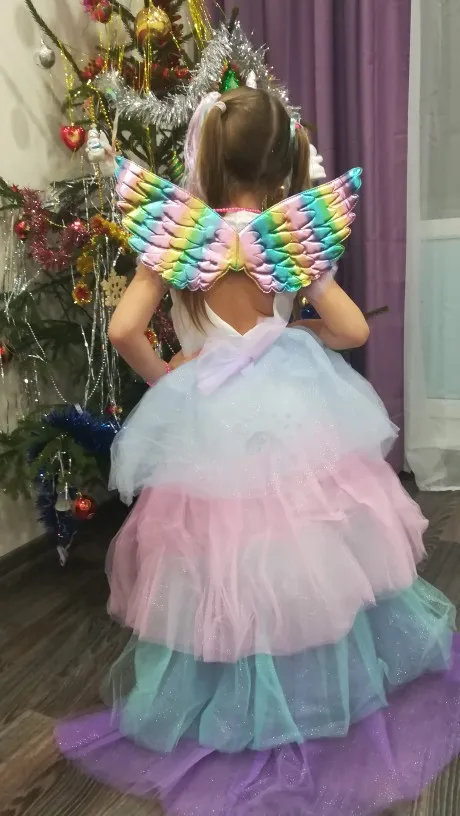 Товар не такой, как на картинке. Платье не очень Пышное (полностью), а рукава имеют только один слой вуали, так что оно не полностью заполнено. Крылья тоже маленькие. Починить поезд-это вызов. Хорошо, что моей дочери нравится. Для девочки ростом 123 см я купил размер 8 + и хорош