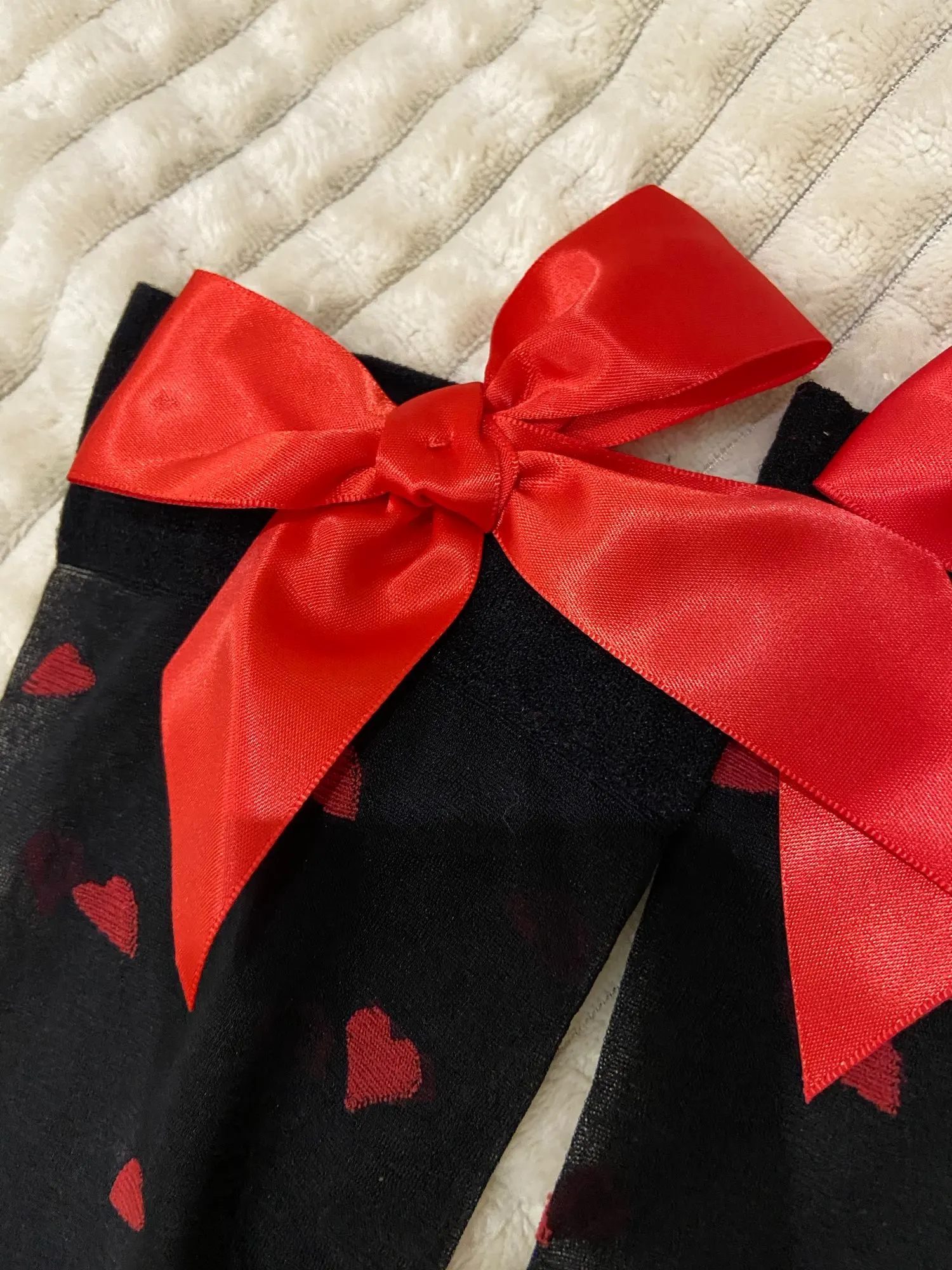 Чулки с красным бантом, фетиш, кружевное сексуальное нижнее белье, колготки до колена, сверхэластичные чулки, нижнее белье, косплей, для девочек