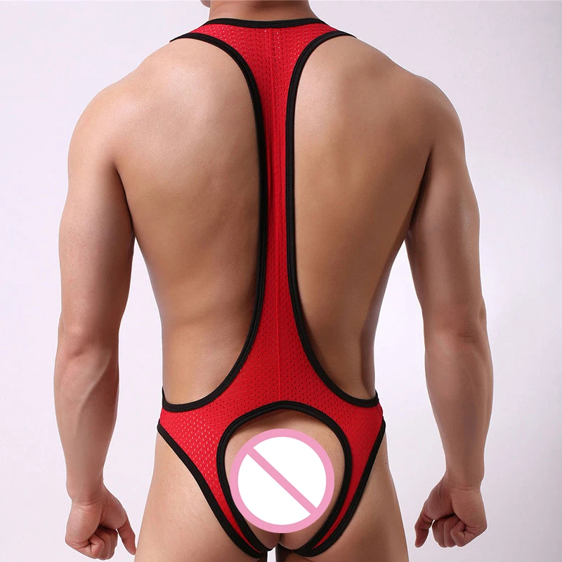 Мужское нижнее белье с открытой спиной, однотонное цветное нижнее белье, боди для борьбы, сетчатый Дышащий комбинезон с дырками, майка-боксеры