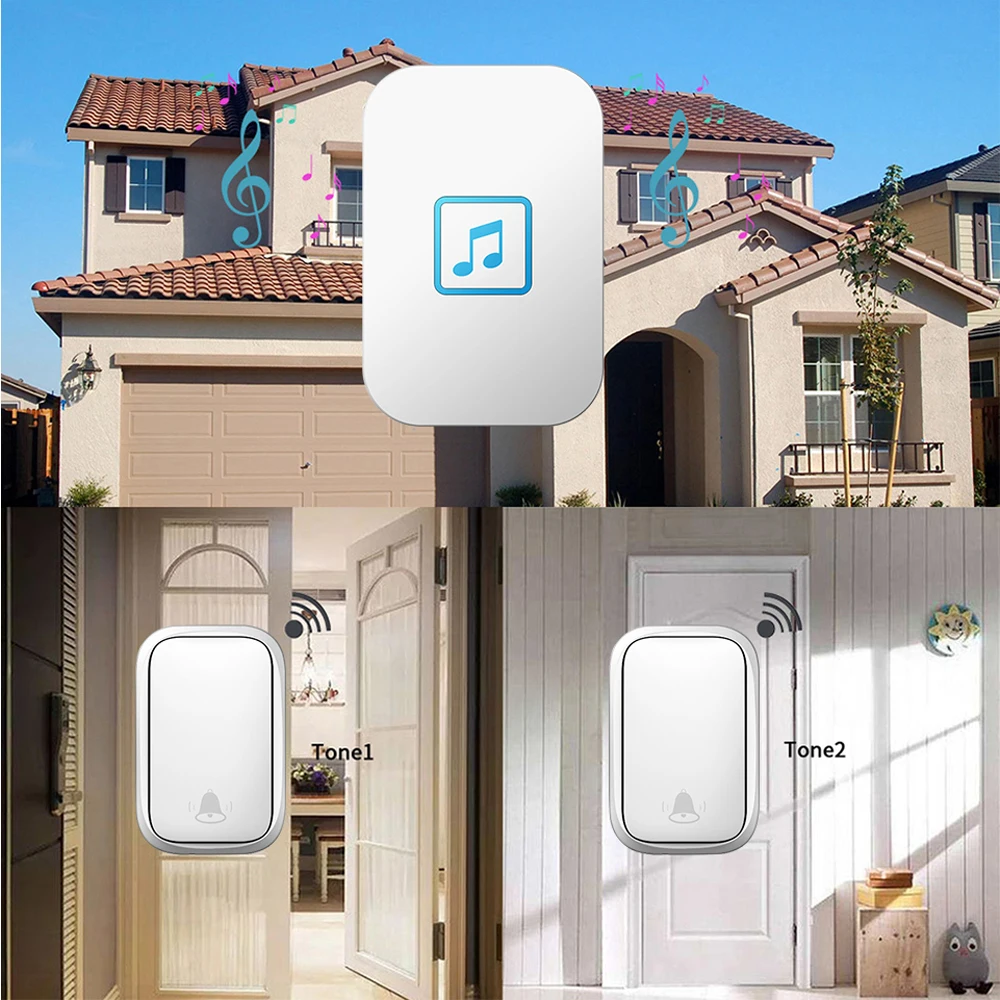 Беспроводной дверной звонок CACAZI, водонепроницаемый, с автономным питанием, дистанционным управлением на расстоянии 150 м, без батарейки, с вилкой Стандарта США, ЕС, Великобритании, Австралии
