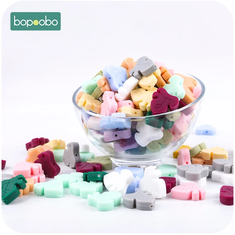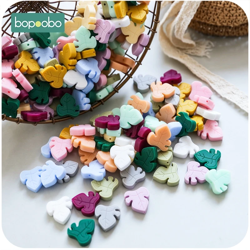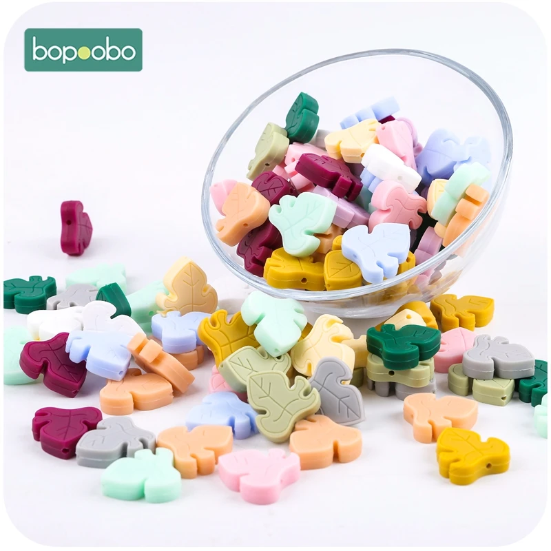 Bopoobo 10 шт. силиконовые бусины BPA бесплатно мультфильм листья п...
