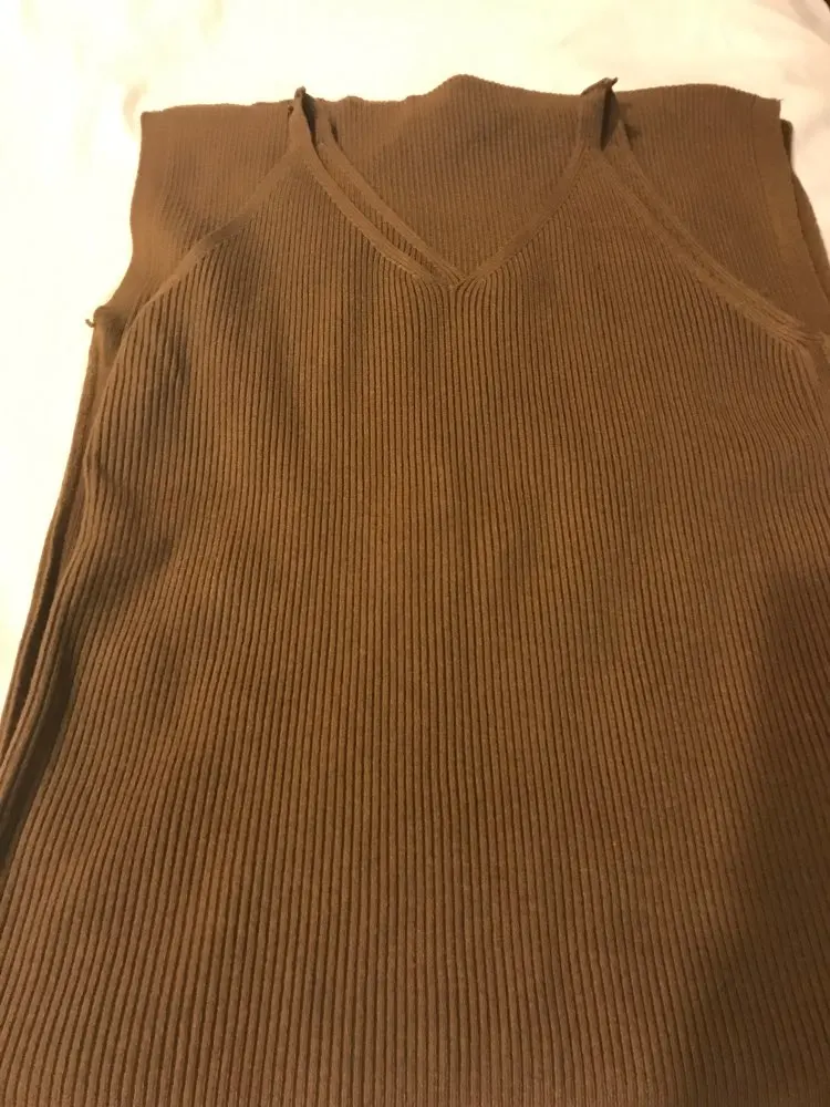 сарафан пришёл за месяц. мне очень понравился как сделан шов, около него плотная вязка. брительки да необходимо будет подшить