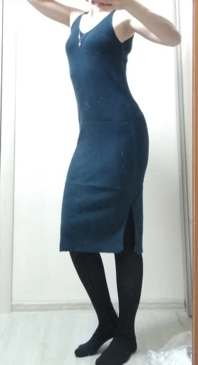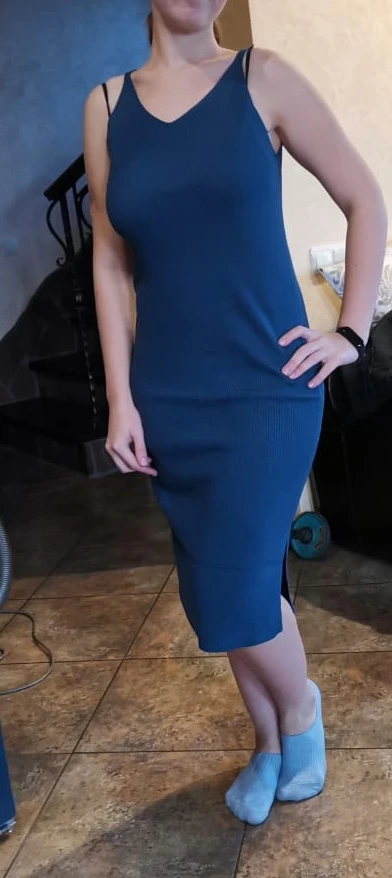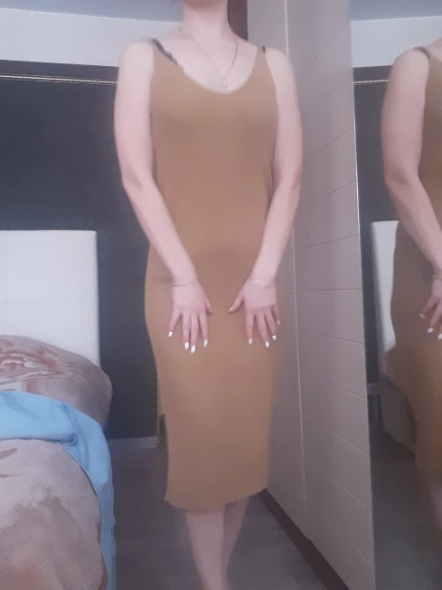 Итак, платье в целом хорошего качества, особенно за такую цену. Радует обработка краёв платья, выглядит аккуратно. Ниточки были только на лямках. Думала что платье более плотное, но оно очень сильно тянется, мягкая ткань словно скользит в руках, тёплая. Приятная на ощупь, но я ожидала более плотной ткани. На параметры 90-67-90 платье облегает по фигуре, но не обтягивает, потому что очень много свободного места, ткань сильно тянется. Нет возможности сфотать на своей фигуре, так как сейчас ношу бандаж после операции, может позже дополню.