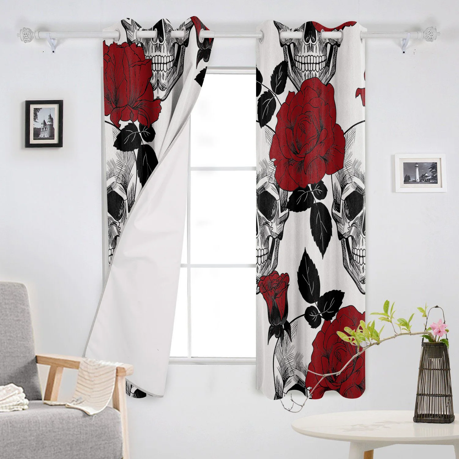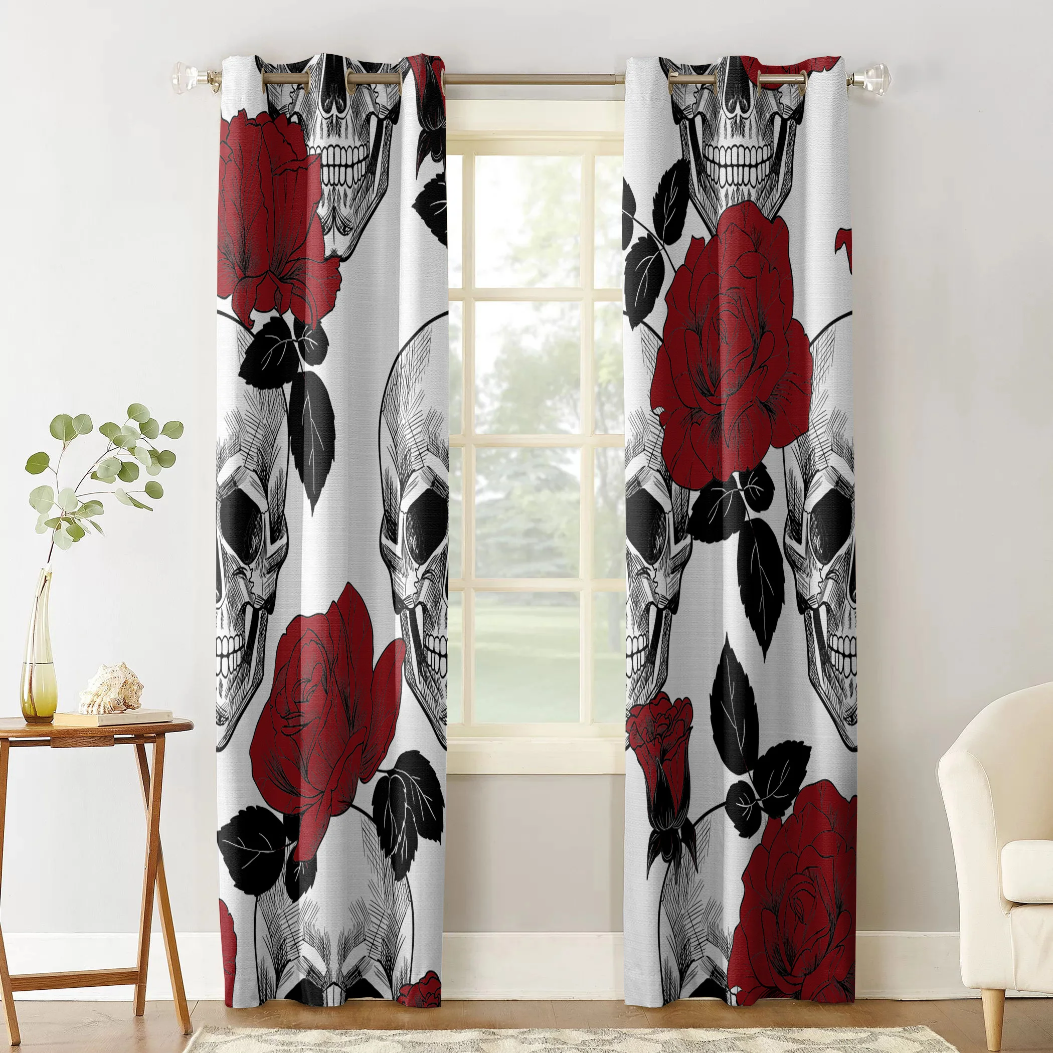 Занавески с розами и черепами для комнаты, большие оконные шторы для ванной, занавески для кухни, спальни, занавески, панели с люверсами