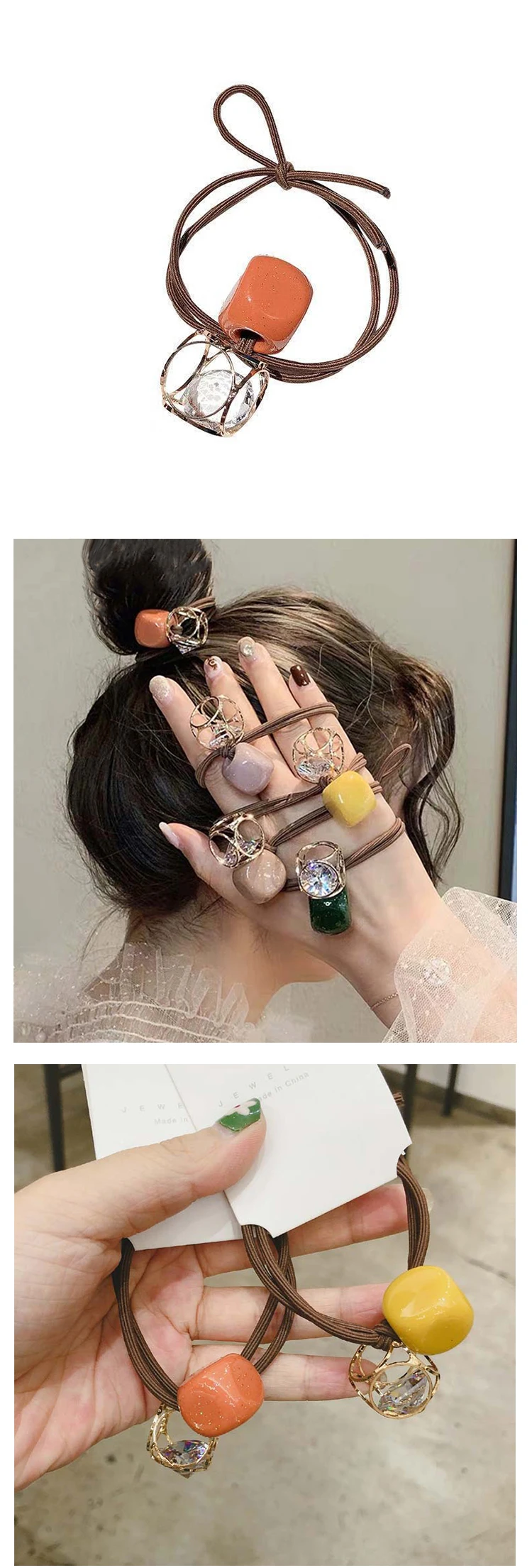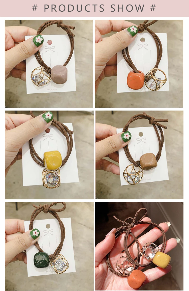 Резинка для волос женская, с кристаллами, квадратная, розовая, зеленая, желтая