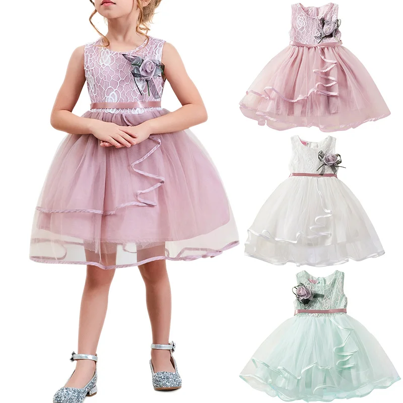 Летнее платье для девочек, кружевное платье с цветами для девочек, костюм принцессы на день рождения для детей, детское платье