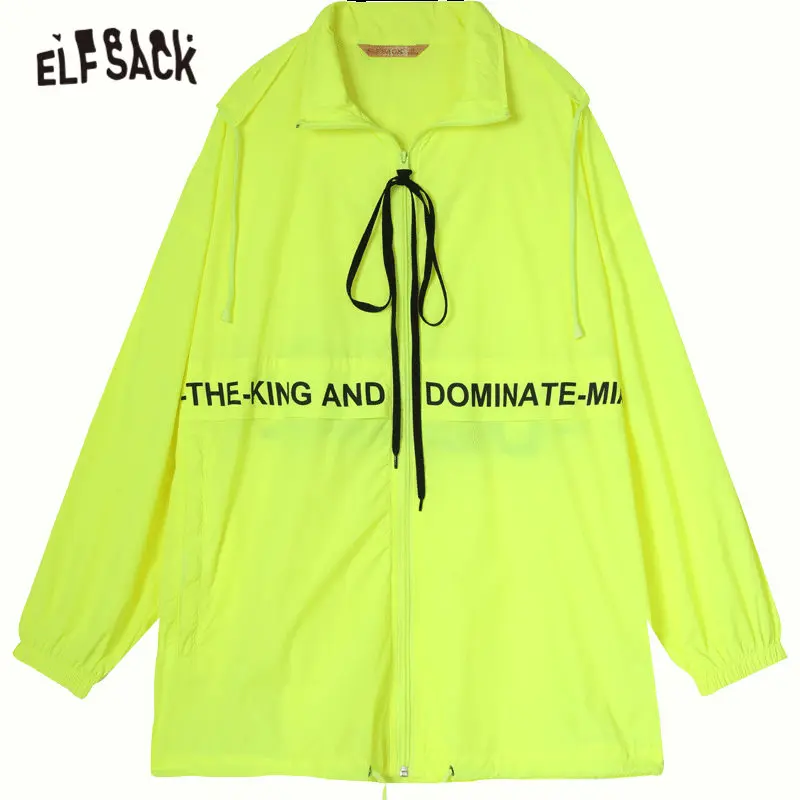Куртка ELFSACK Женская однотонная в стиле оверсайз с капюшоном, на молнии, с длинным рукавом, повседневная верхняя одежда, зеленая однотонная одежда, весна 2020