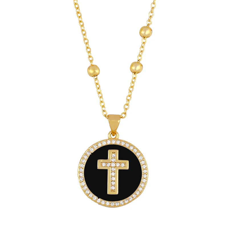 Ожерелье женское FLOLA CZ, с золотым крестом, с кристаллами, круглы...