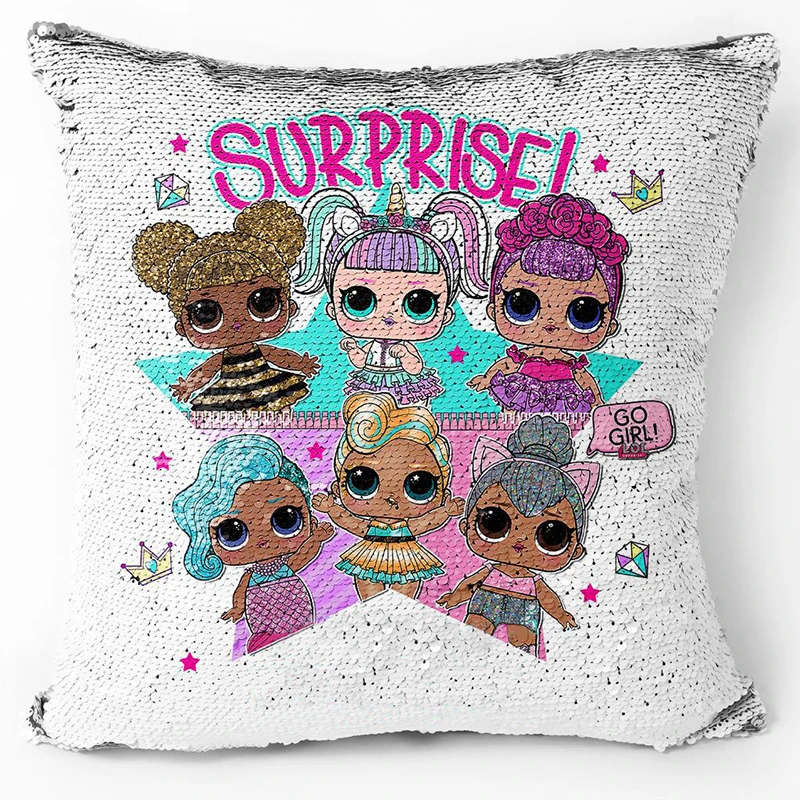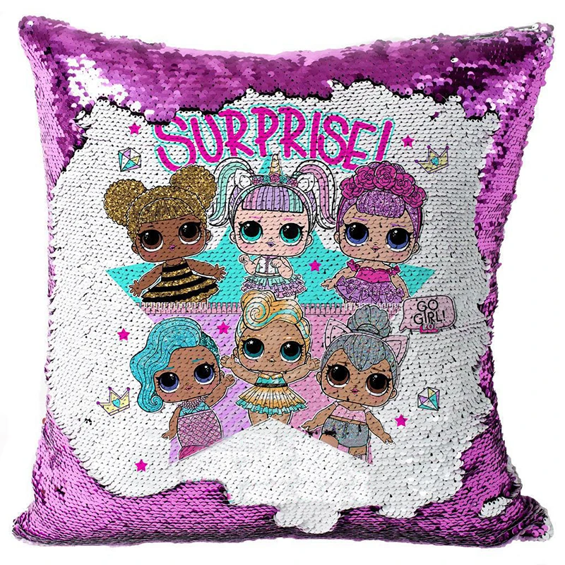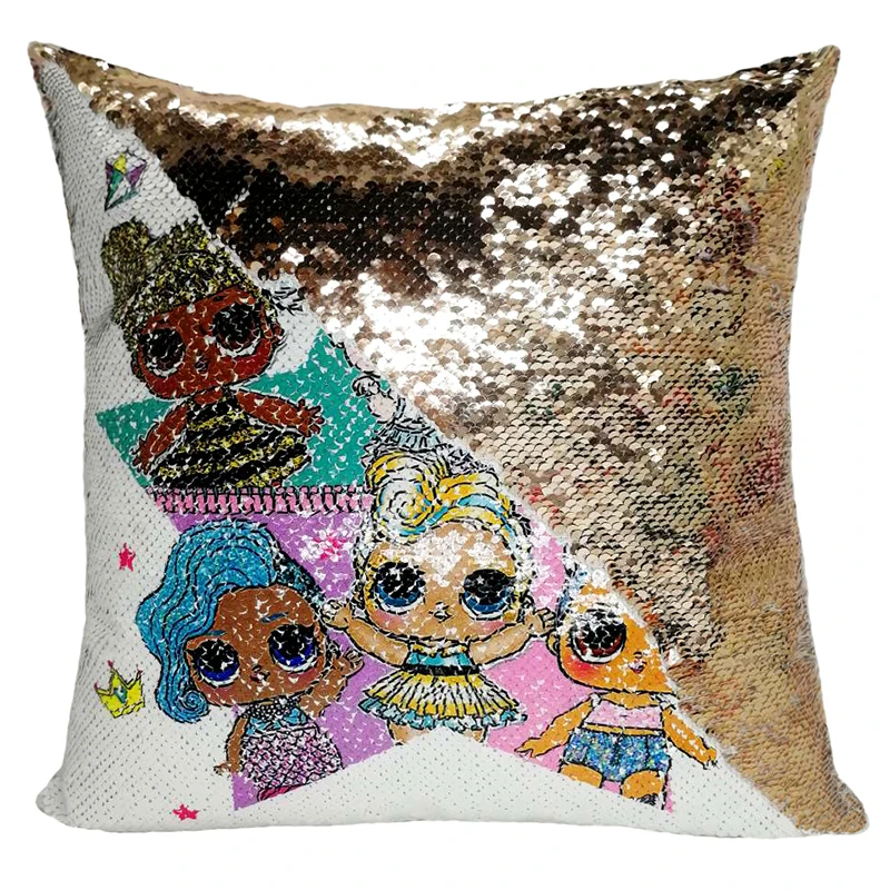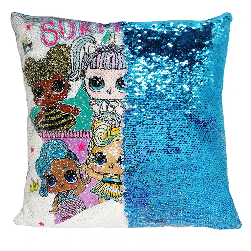 Наволочка lol doll surprise, новинка, двухцветная наволочка с блестками для детской спальни, дивана, аниме-фигурка, 40x40 см
