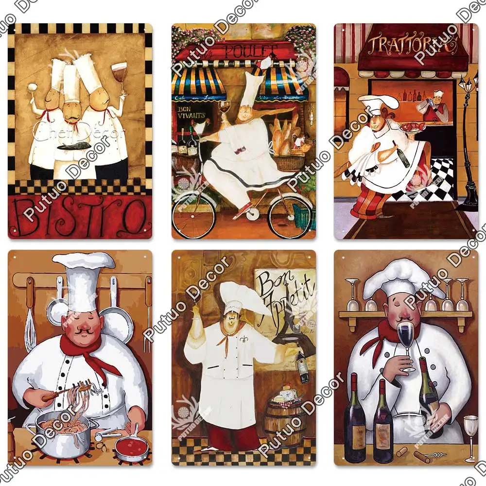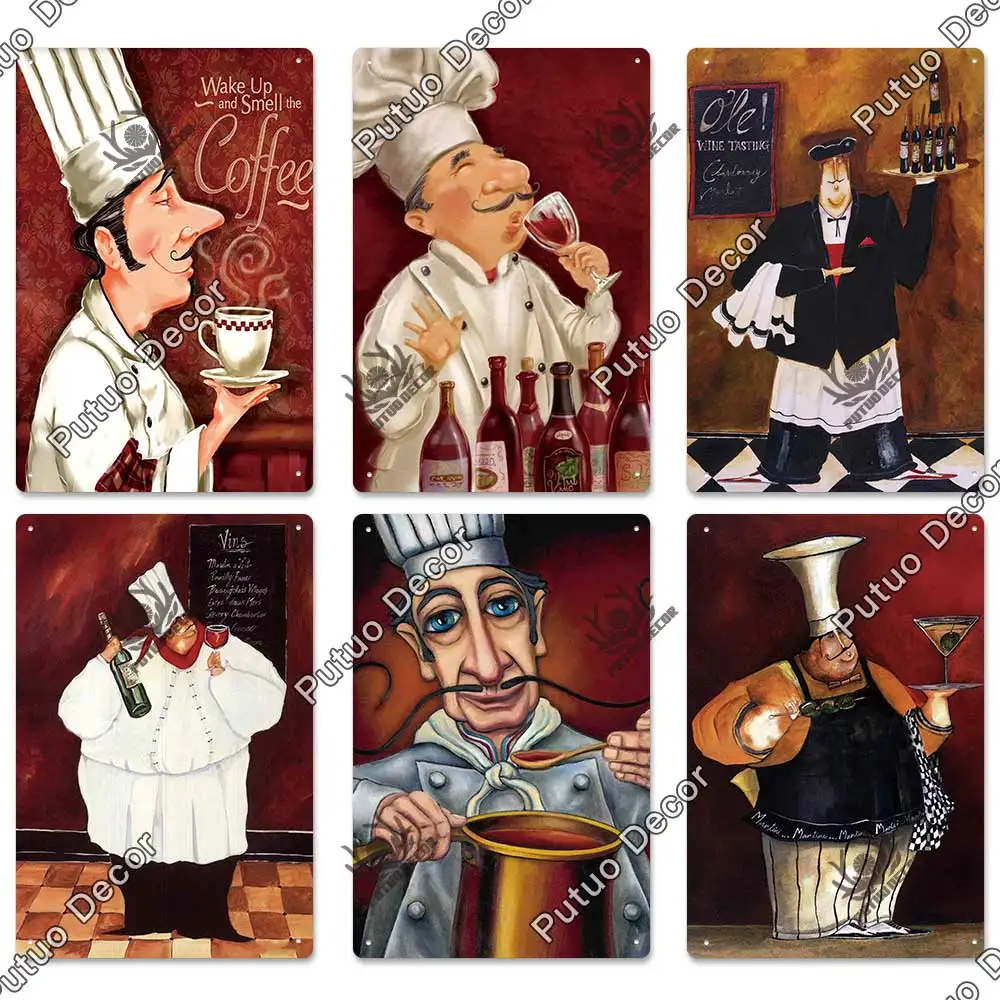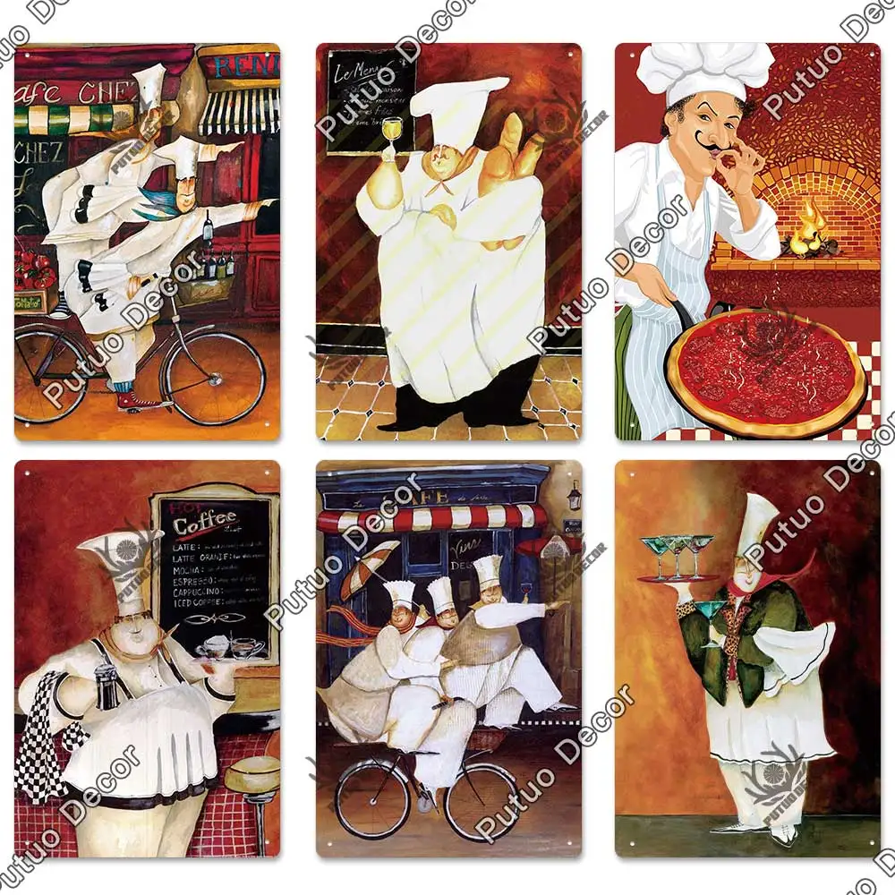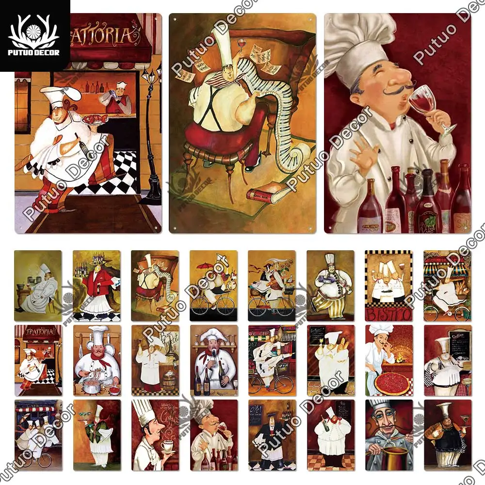 Жестяная вывеска для шеф-повара Putuo, металлическая ретро-картина, винтажный Настенный декор для кухни, ресторана, закусочной, бистро