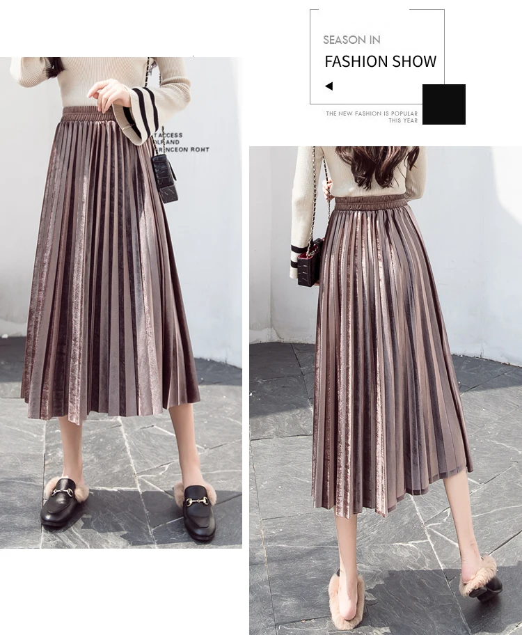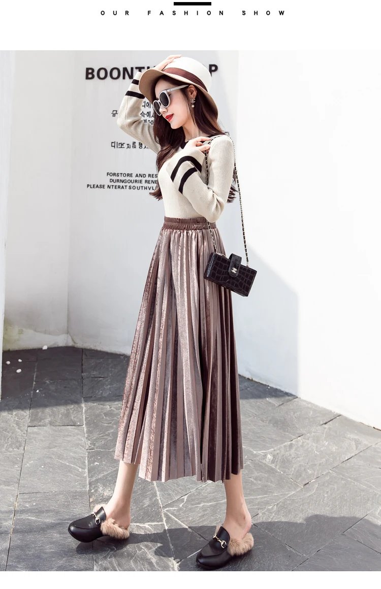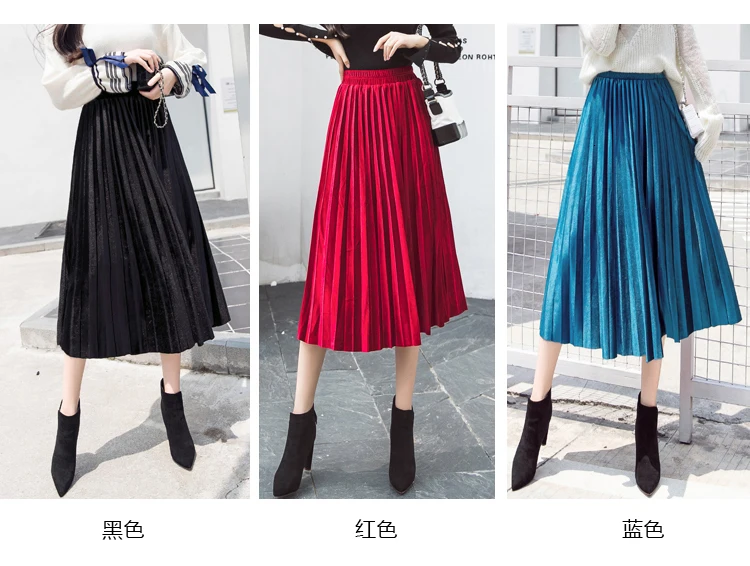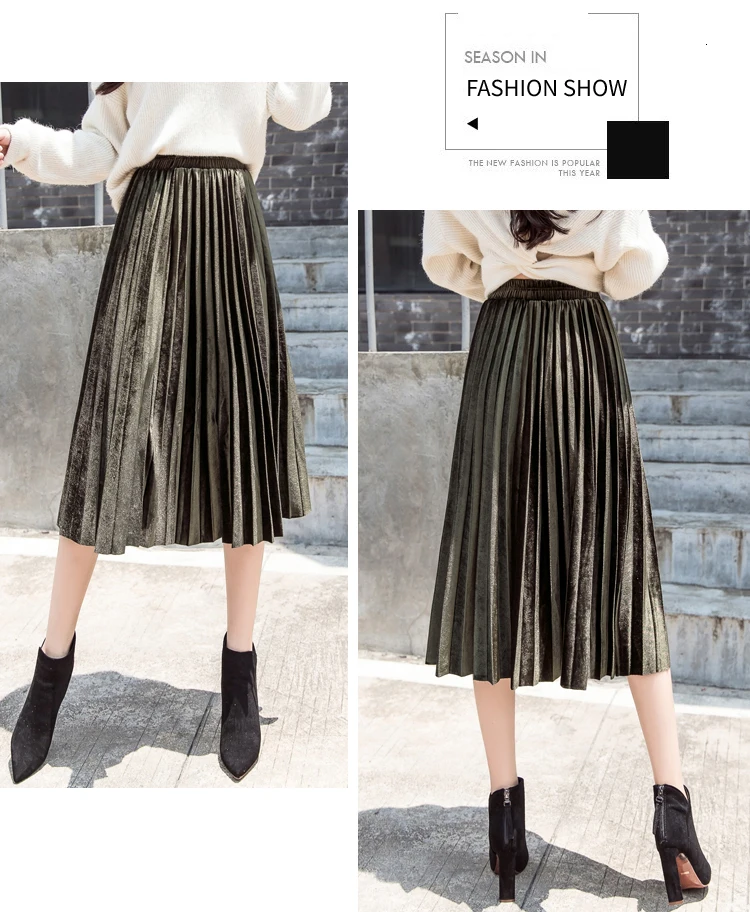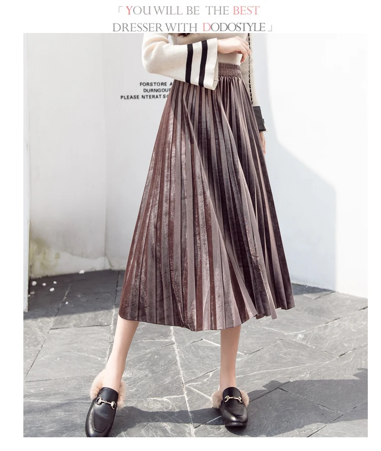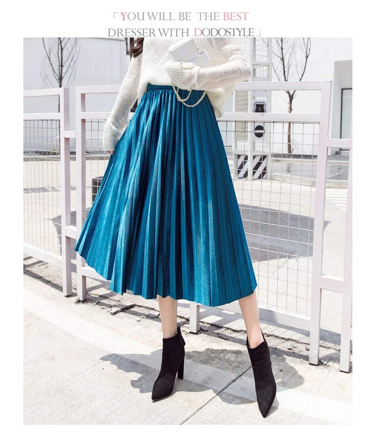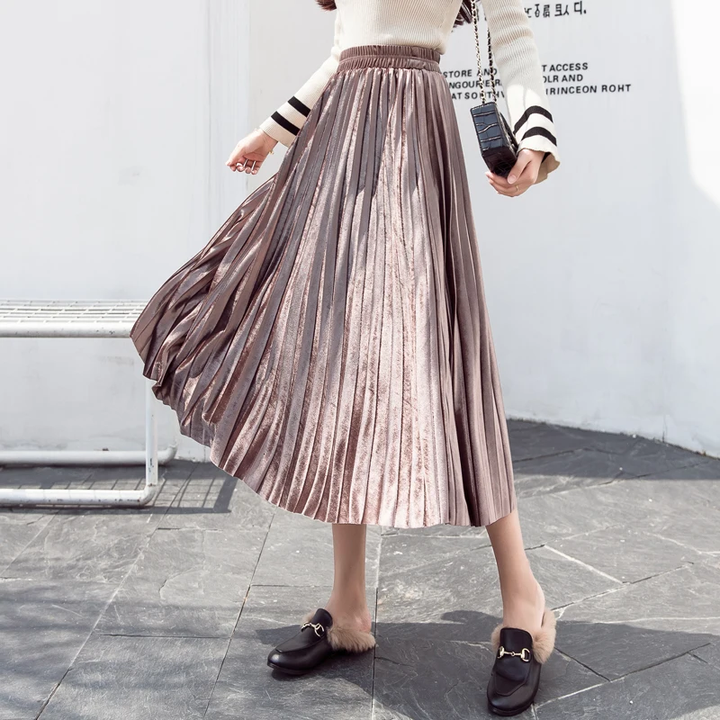 Женская плиссированная юбка-макси, однотонная Повседневная золотистая бархатная юбка-трапеция, Осень-зима 2020