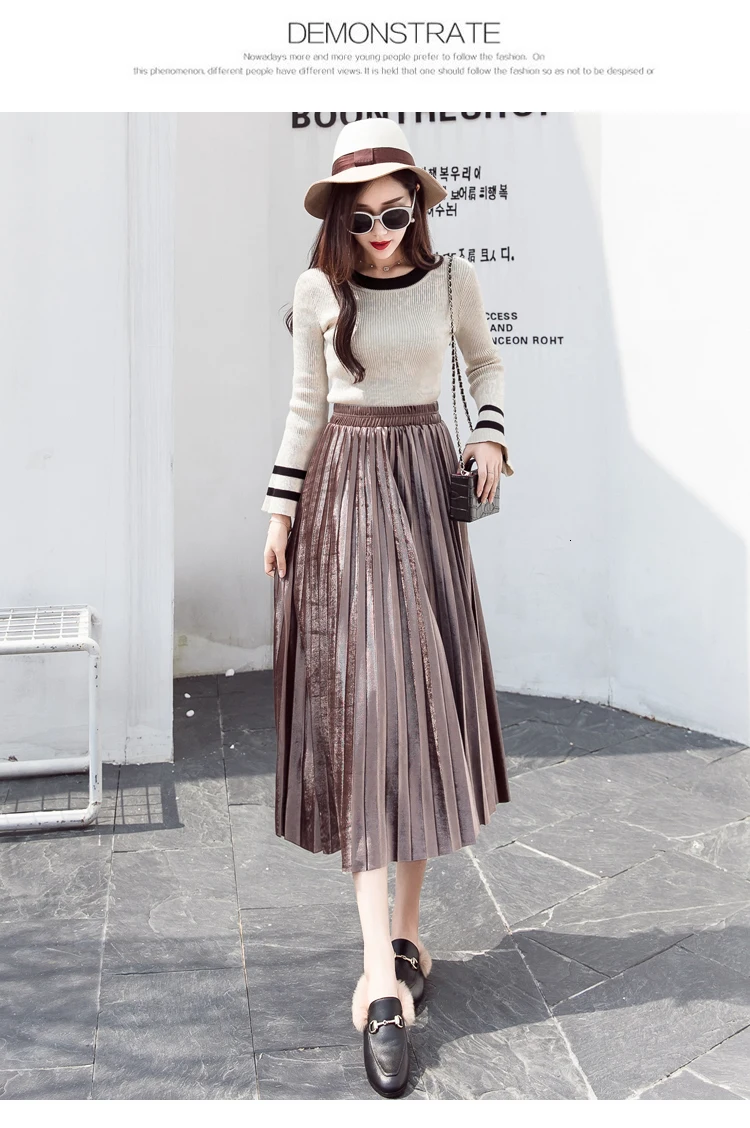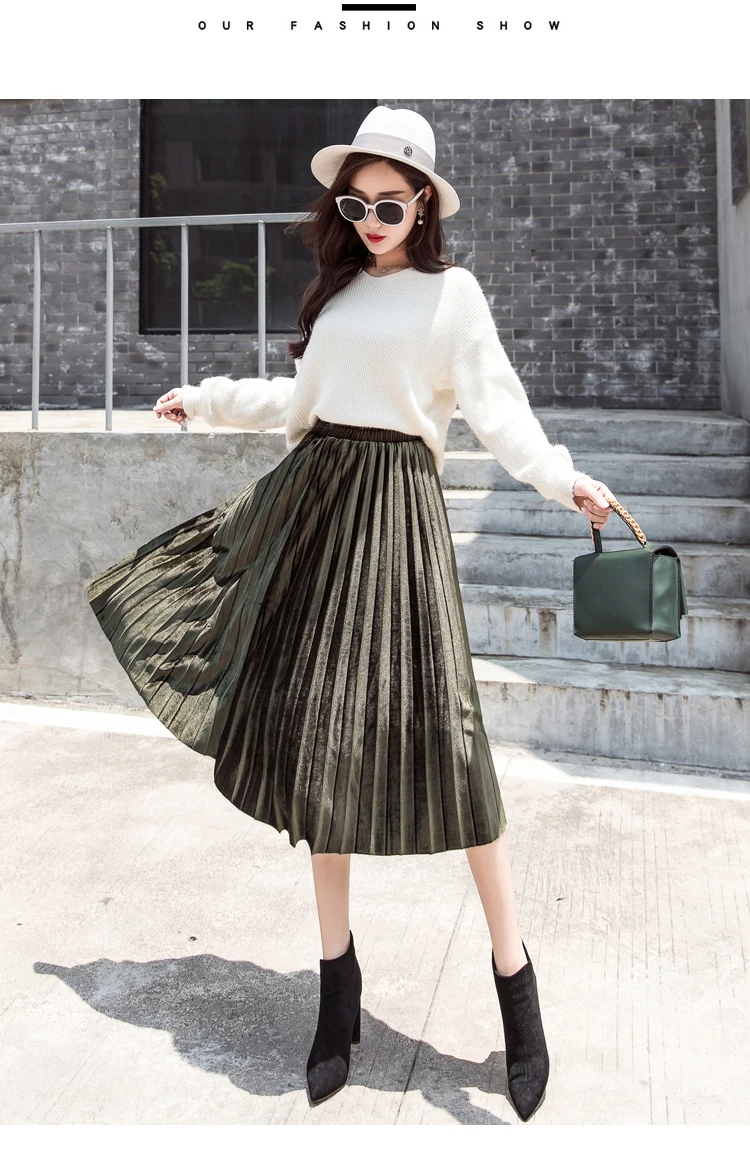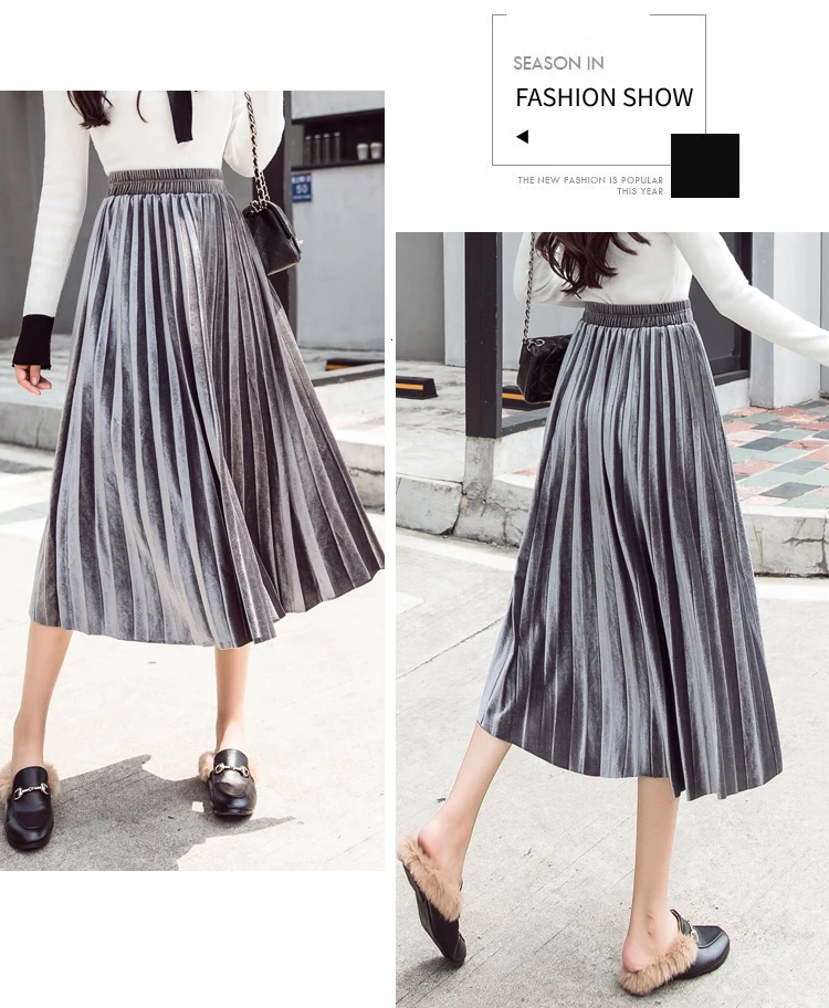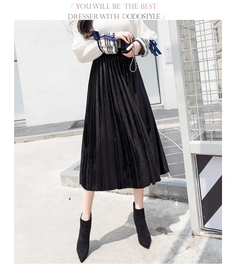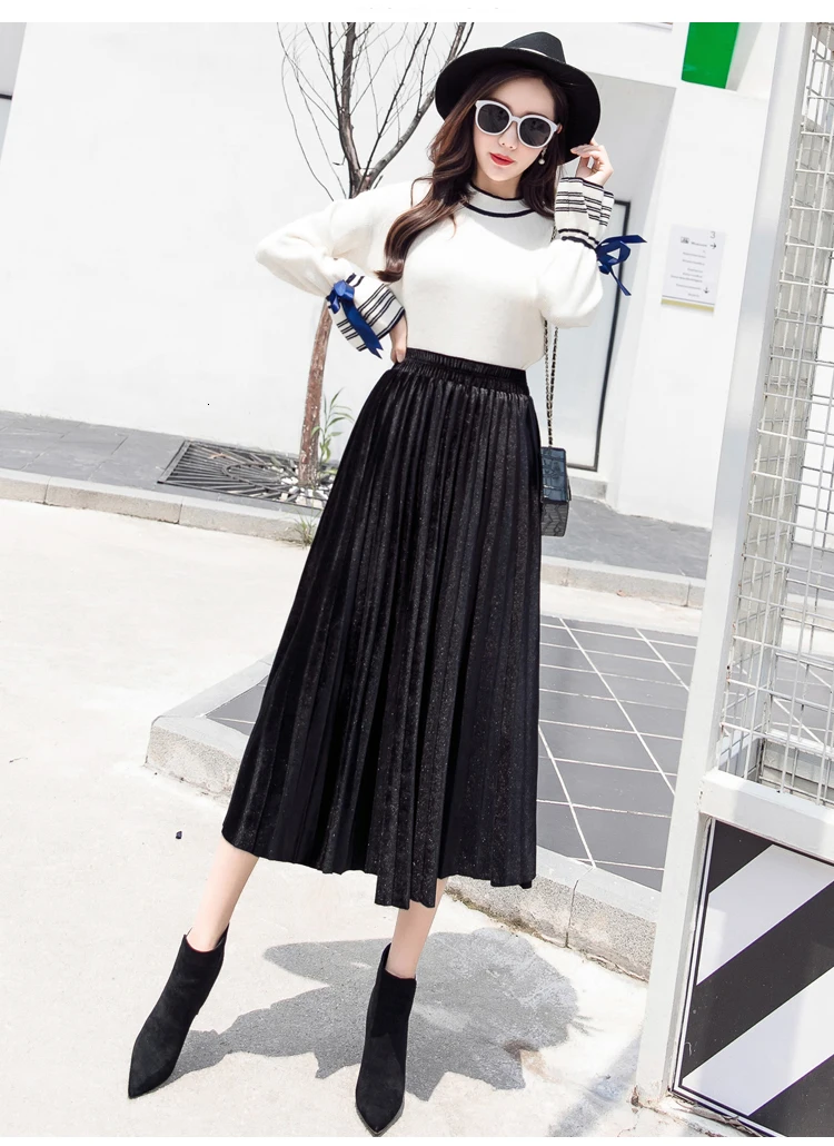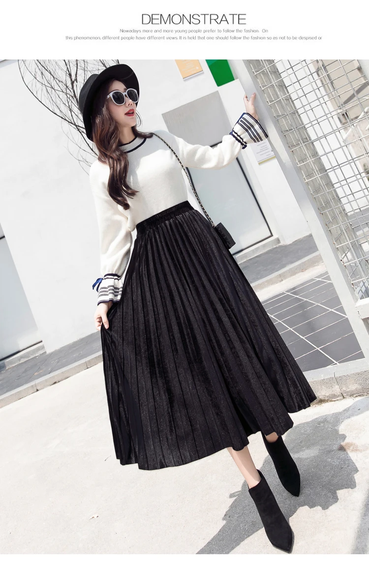 Женская плиссированная юбка-макси, однотонная Повседневная золотистая бархатная юбка-трапеция, Осень-зима 2020