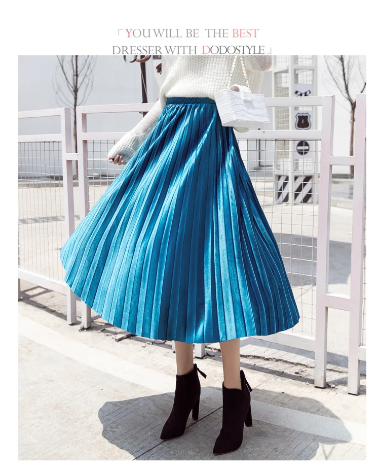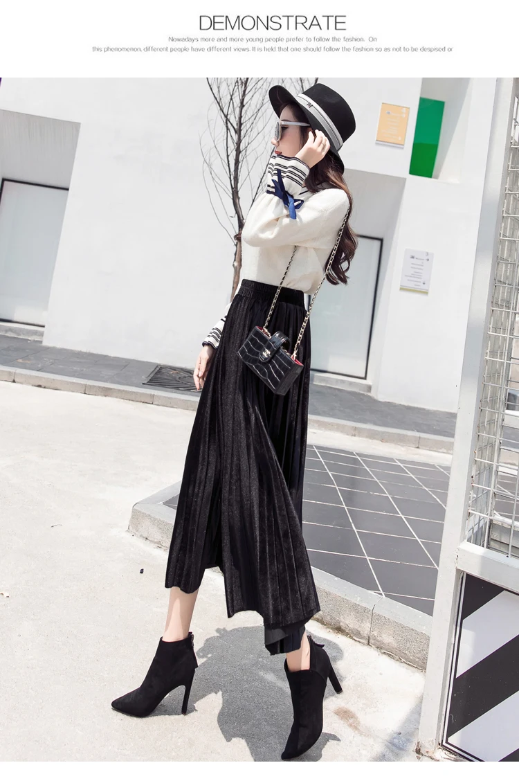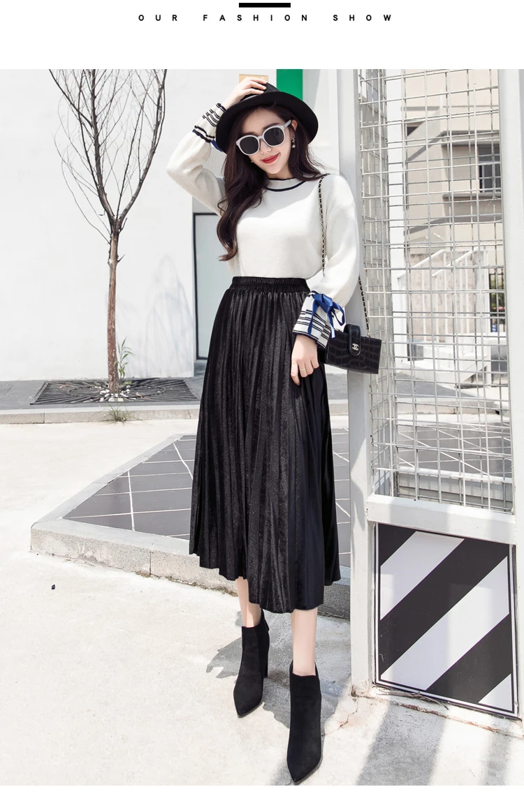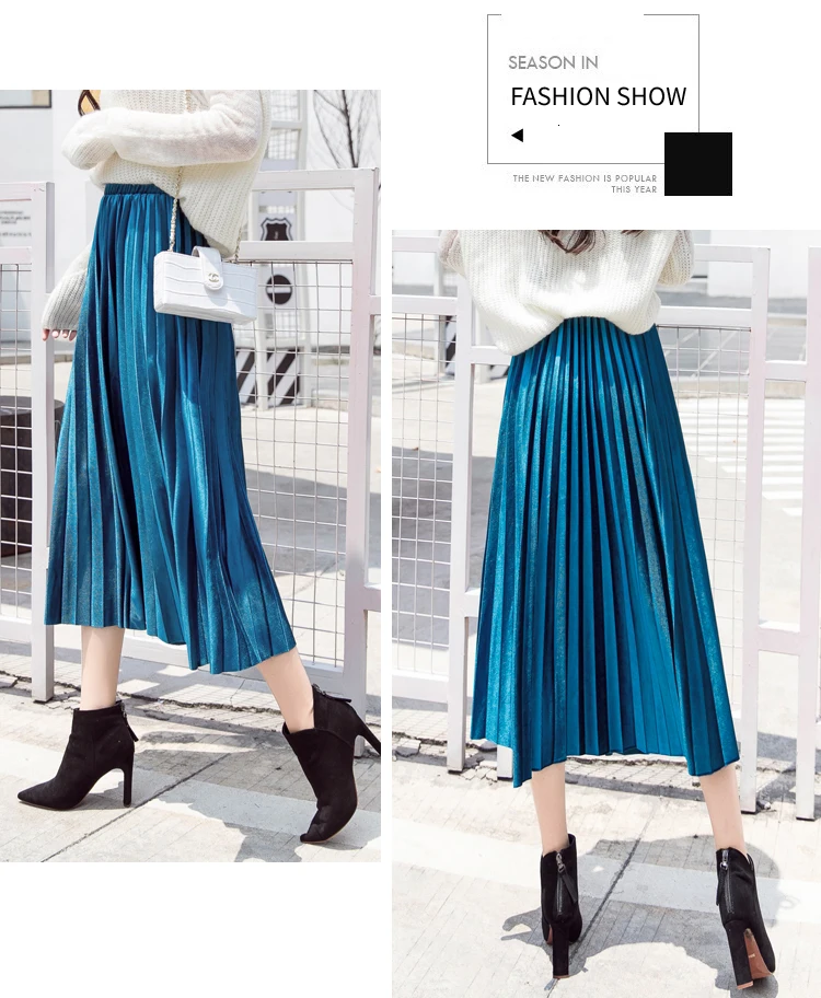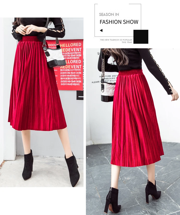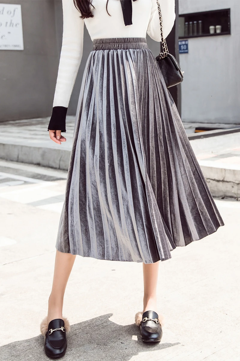 Женская плиссированная юбка-макси, однотонная Повседневная золотистая бархатная юбка-трапеция, Осень-зима 2020