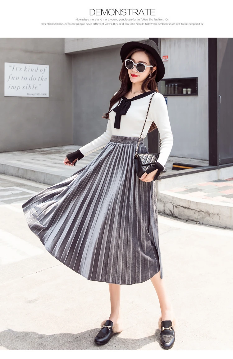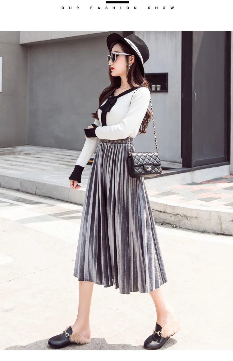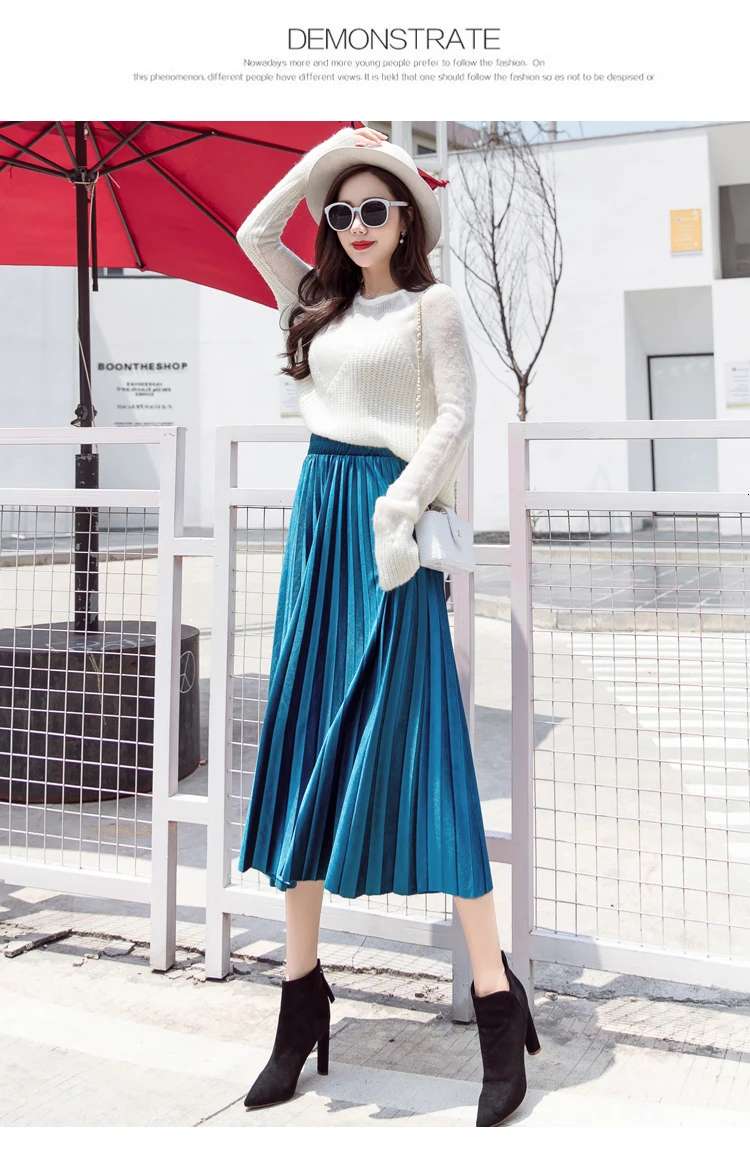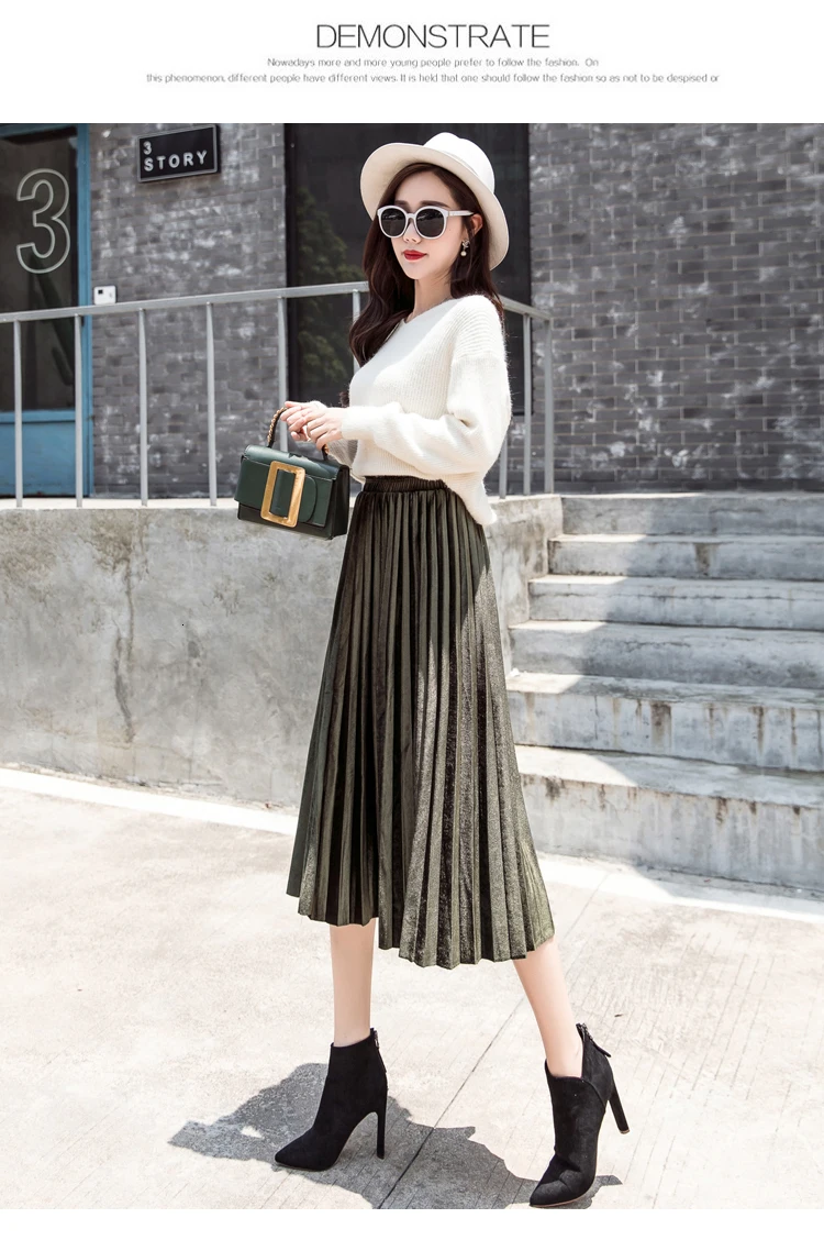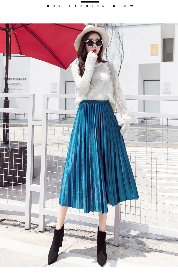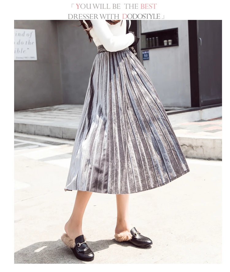 Женская плиссированная юбка-макси, однотонная Повседневная золотистая бархатная юбка-трапеция, Осень-зима 2020