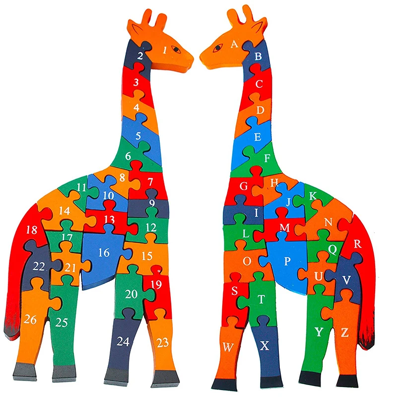 Деревянная головоломка для малышей, детей, ранние уроки, интеллект, мультяшное животное, мозаика с жирафом пазл, деревянные игрушки