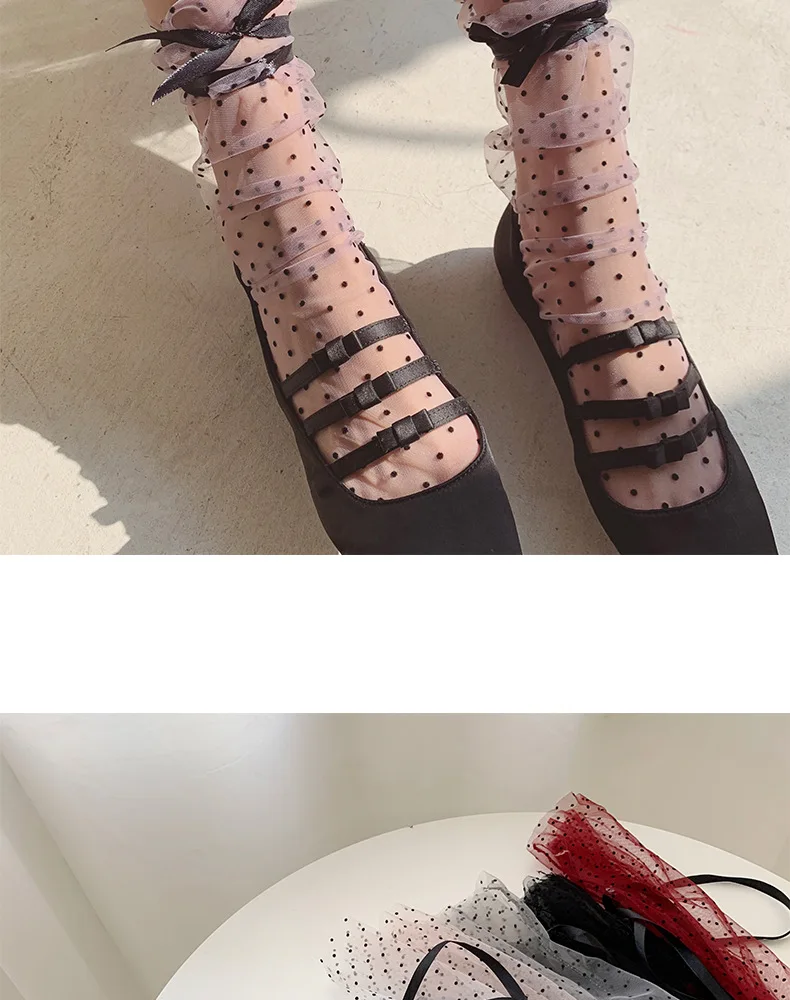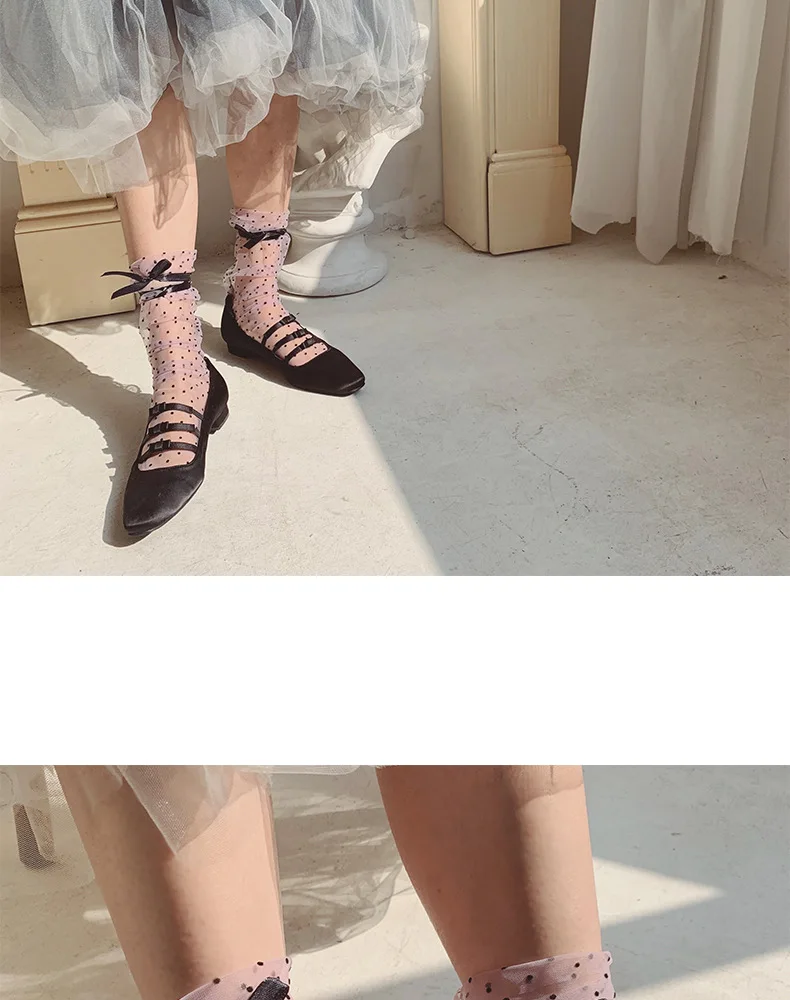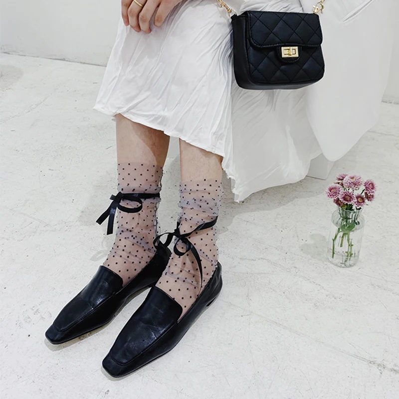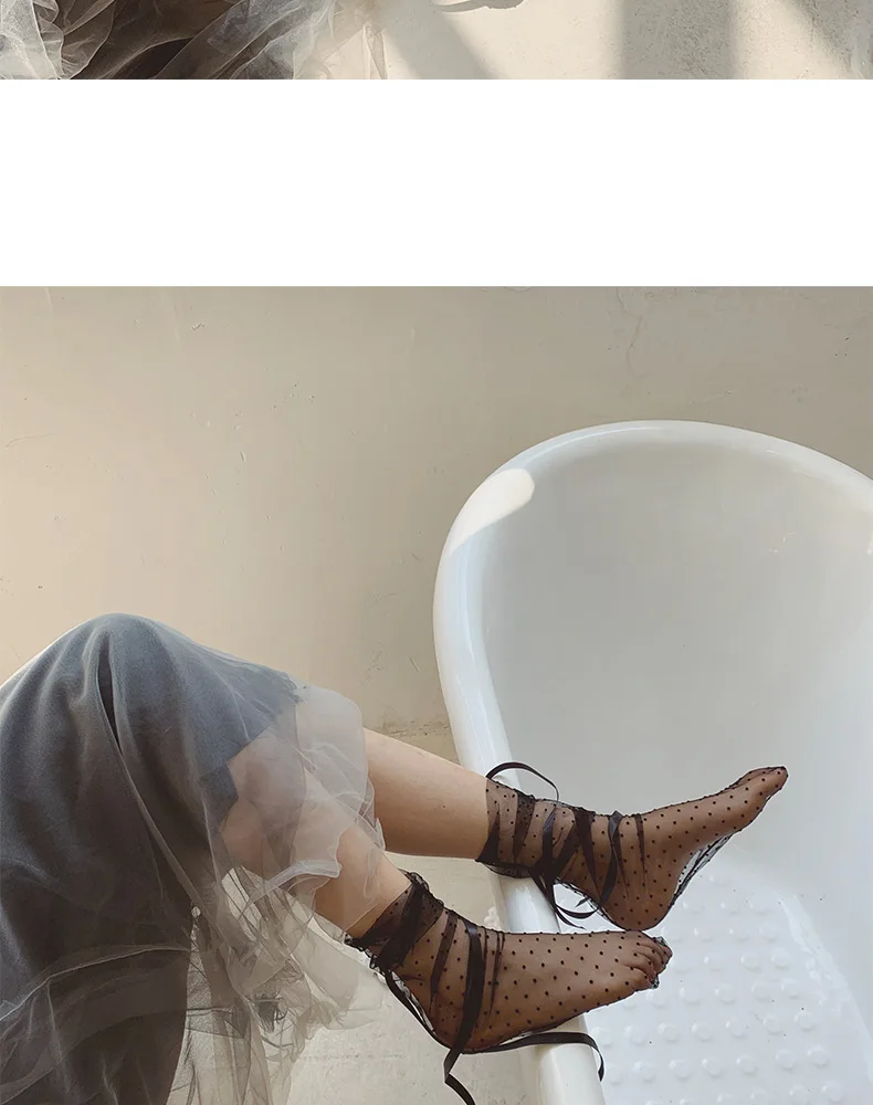 Носки женские, тюлевые, в горошек, ультратонкие, забавные, прозрачные