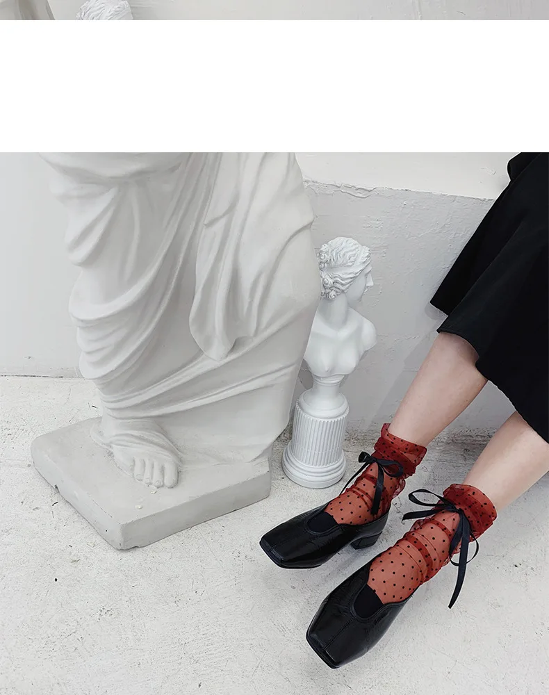 Носки женские в горошек, пикантные ультратонкие длинные прозрачные, со шнуровкой, Хэппи Сокс, уличная одежда, летние