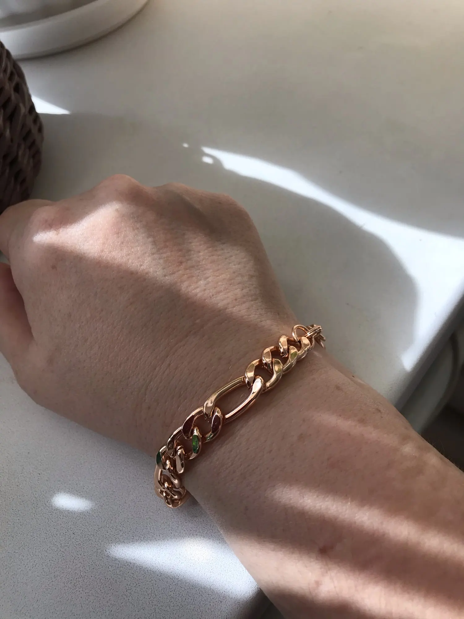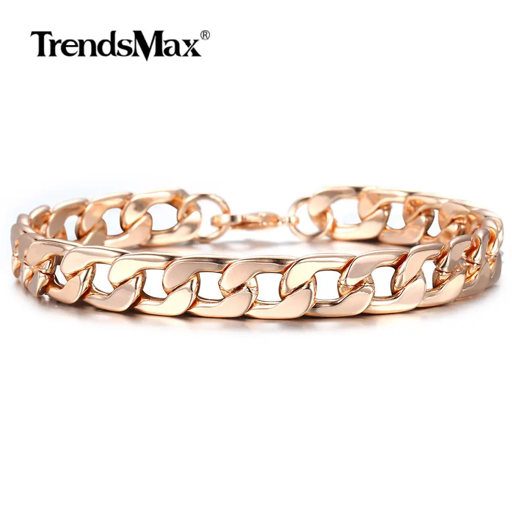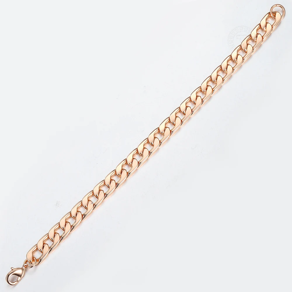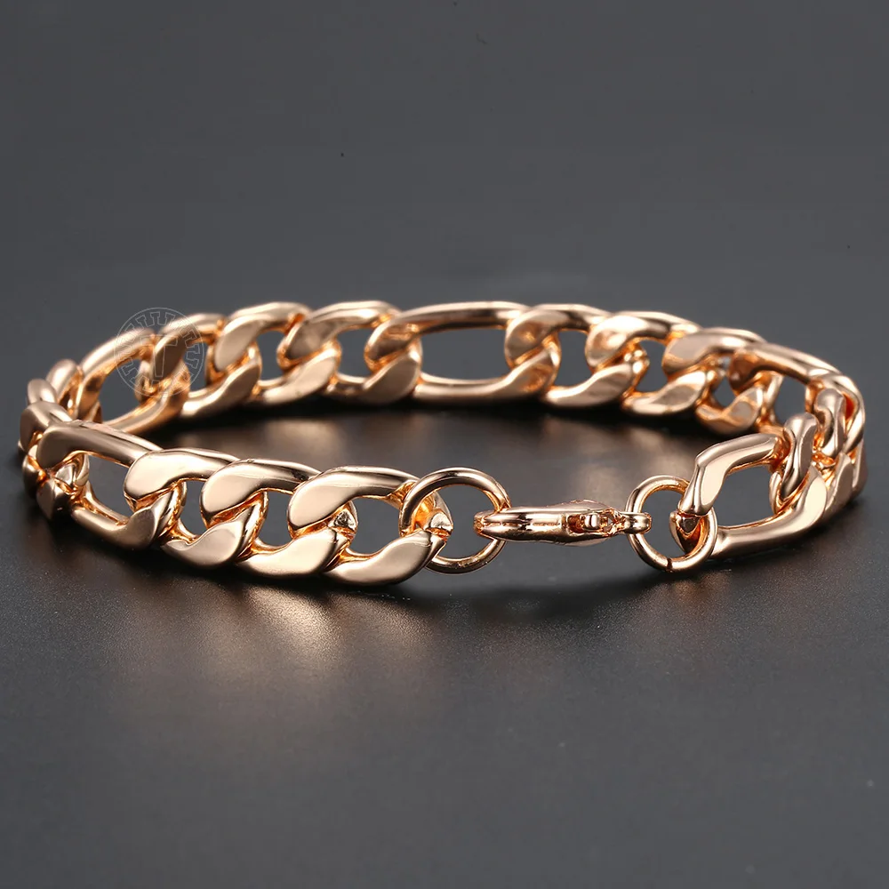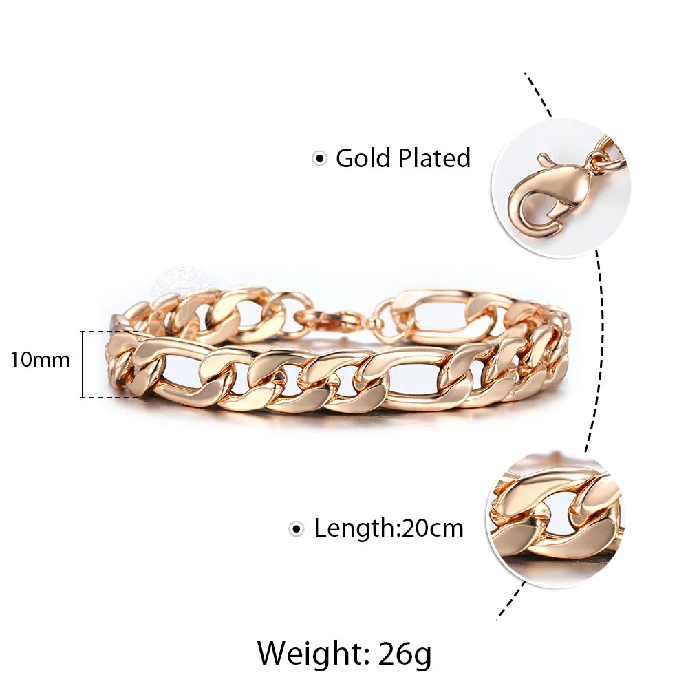 Браслет-цепочка из кубинской панцирной цепи Фигаро для мужчин и женщин, гладкое запястье, Подарочная бижутерия, застежка-карабин, 10 мм, розовое золото 585 пробы, 20 см, CBM05